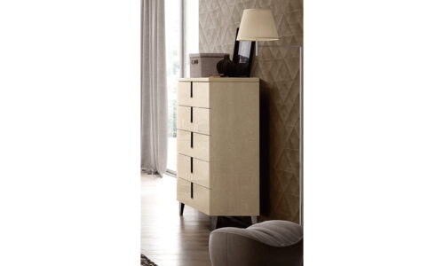 Comodă înaltă cu 5 sertare spațioase, ideală pentru depozitarea ordonată a hainelor și accesoriilor