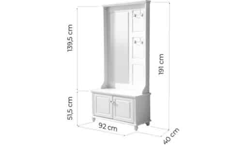 Prețul inițial a fost: 10.800,00 lei.7.150,00 leiPrețul curent este: 7.150,00 lei.Cuier cu Oglinda Elizabeth, 92x40x191cm, Alb