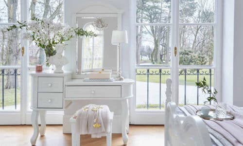 Prețul inițial a fost: 5.500,00 lei.3.660,00 leiPrețul curent este: 3.660,00 lei.Masa de toaleta cu oglinda Elizabeth, 128x45x173cm, Alb