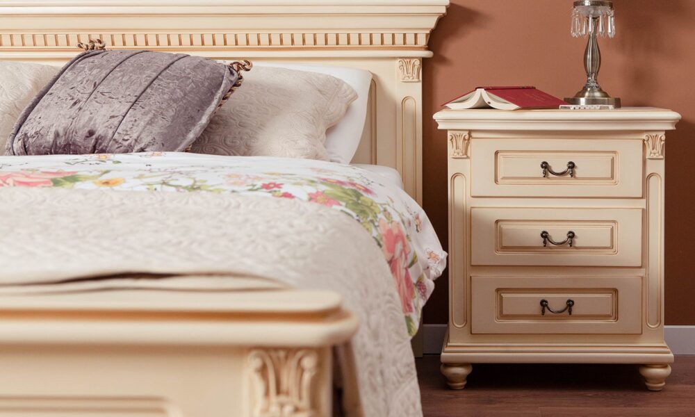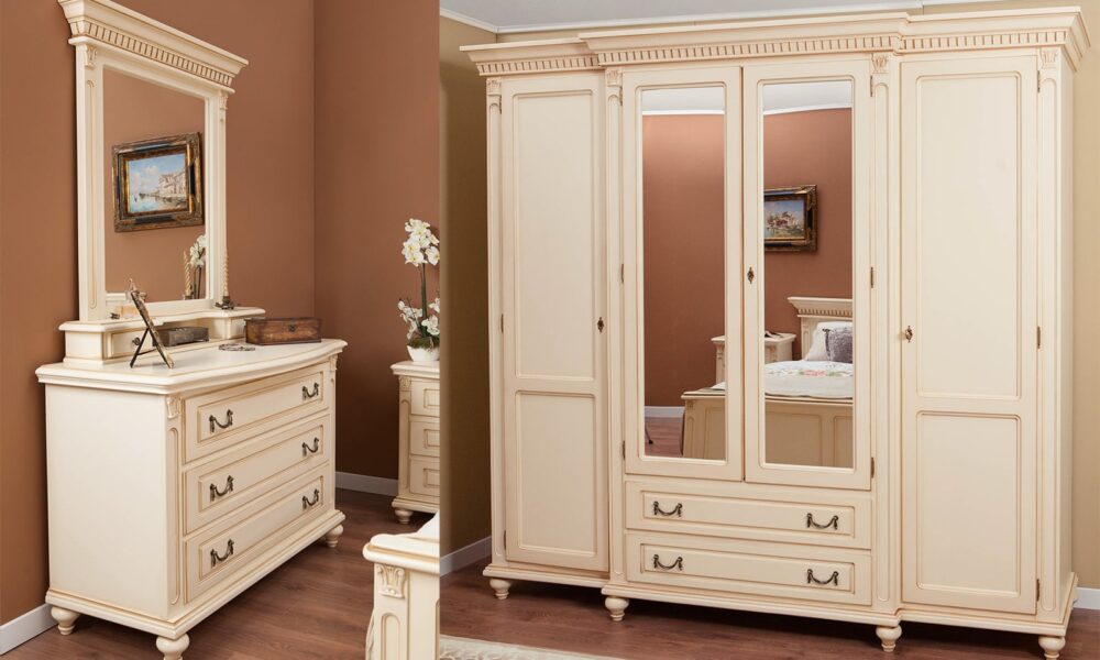 Interval de prețuri: 6.530,00 lei până la 7.289,00 leiSet Dormitor Roberta, Lemn Masiv, Crem Patinat