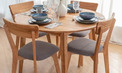 Prețul inițial a fost: 6.200,00 lei.4.249,00 leiPrețul curent este: 4.249,00 lei.Masă Rotundă Oliver, Blat Stejar