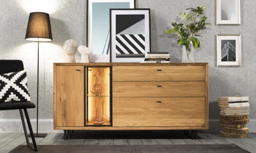 Prețul inițial a fost: 16.400,00 lei.11.289,00 leiPrețul curent este: 11.289,00 lei.Comodă Dominic, Stejar Masiv, 184x44x86cm