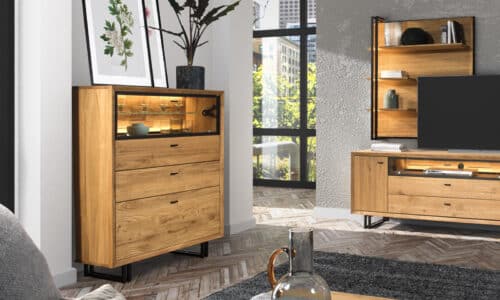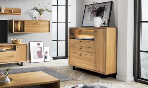 Prețul inițial a fost: 19.500,00 lei.12.889,00 leiPrețul curent este: 12.889,00 lei.Comoda Siena, Lemn Masiv, Stejar Natur, 103.5×116.8×39 cm