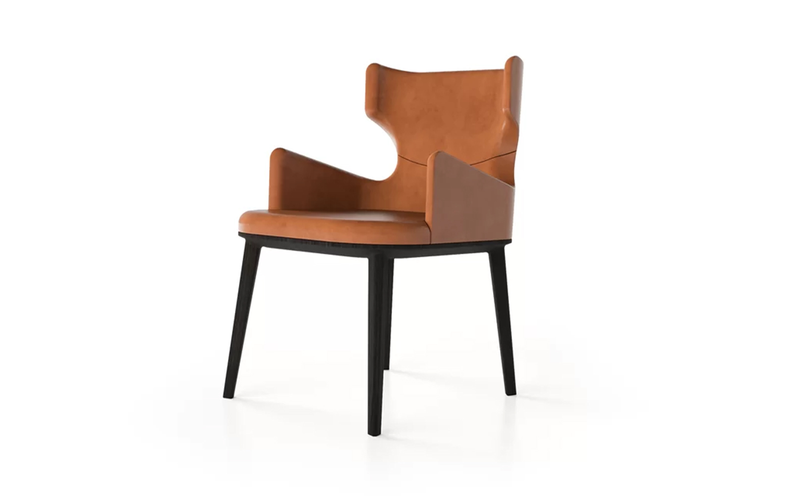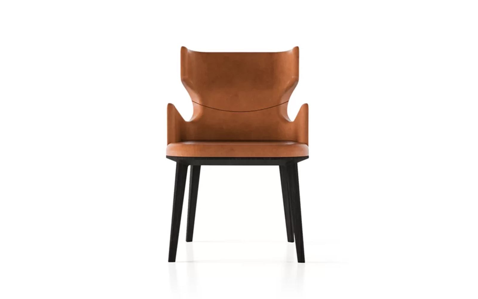 Designul său este definit de linii fluide și volume atent echilibrate, cu o structură care susține armonios corpul și creează o senzație imediată de stabilitate și confort. Spătarul continuu, ușor curbat, se îmbină natural cu brațele integrate, oferind o susținere ergonomică optimă și o experiență de ședere relaxantă, indiferent dacă fotoliul este utilizat pentru dining, întâlniri informale sau momente de destindere.