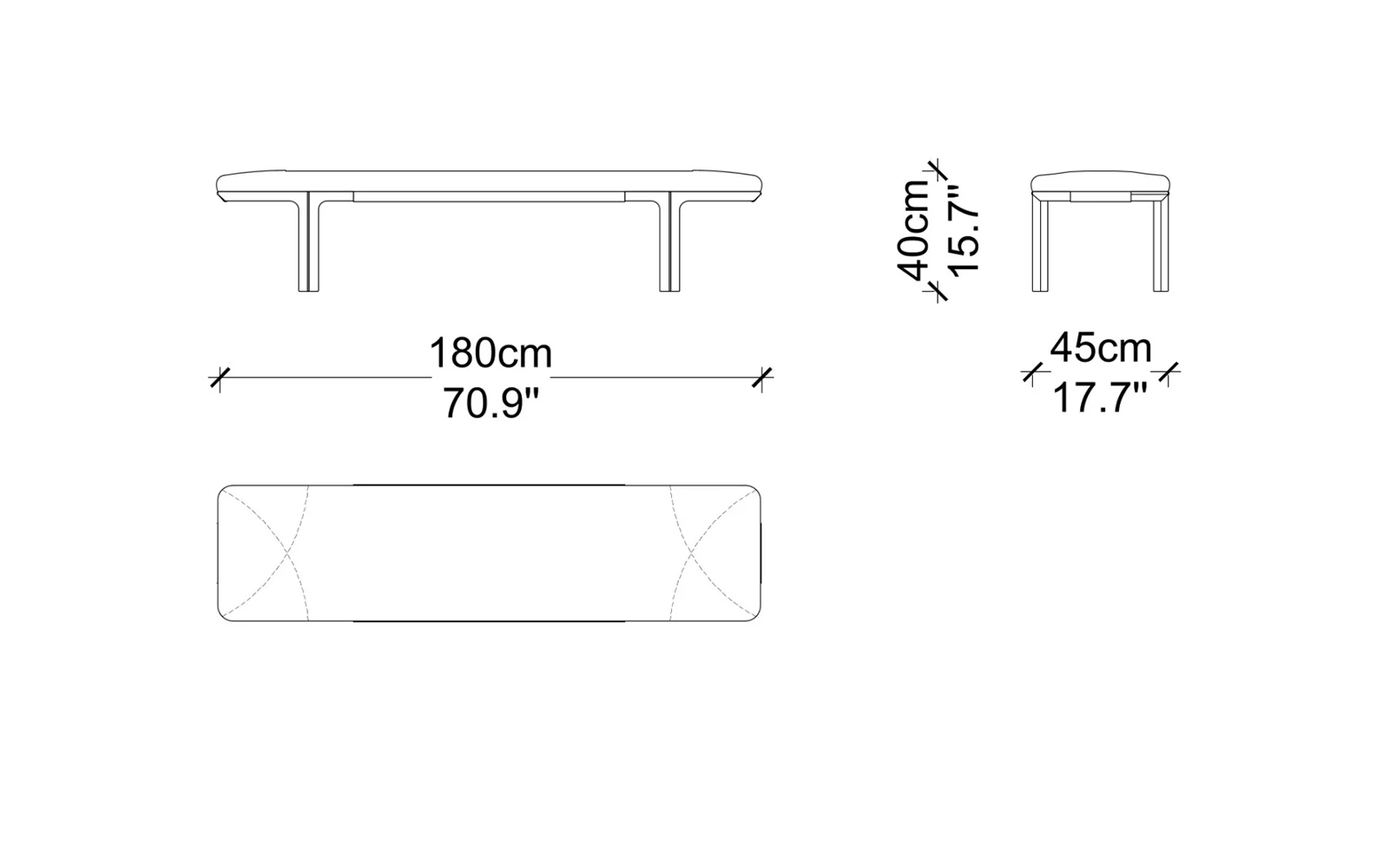 Șezutul amplu este conceput pentru a oferi confort real în utilizare zilnică, fie că este amplasată la o masă de dining, într-un hol generos, la capătul patului sau într-un spațiu de tip lounge, hotelier ori office. Forma sa alungită permite utilizarea simultană de către mai multe persoane, păstrând în același timp o siluetă aerisită și ușor de integrat în diverse stiluri de interior.