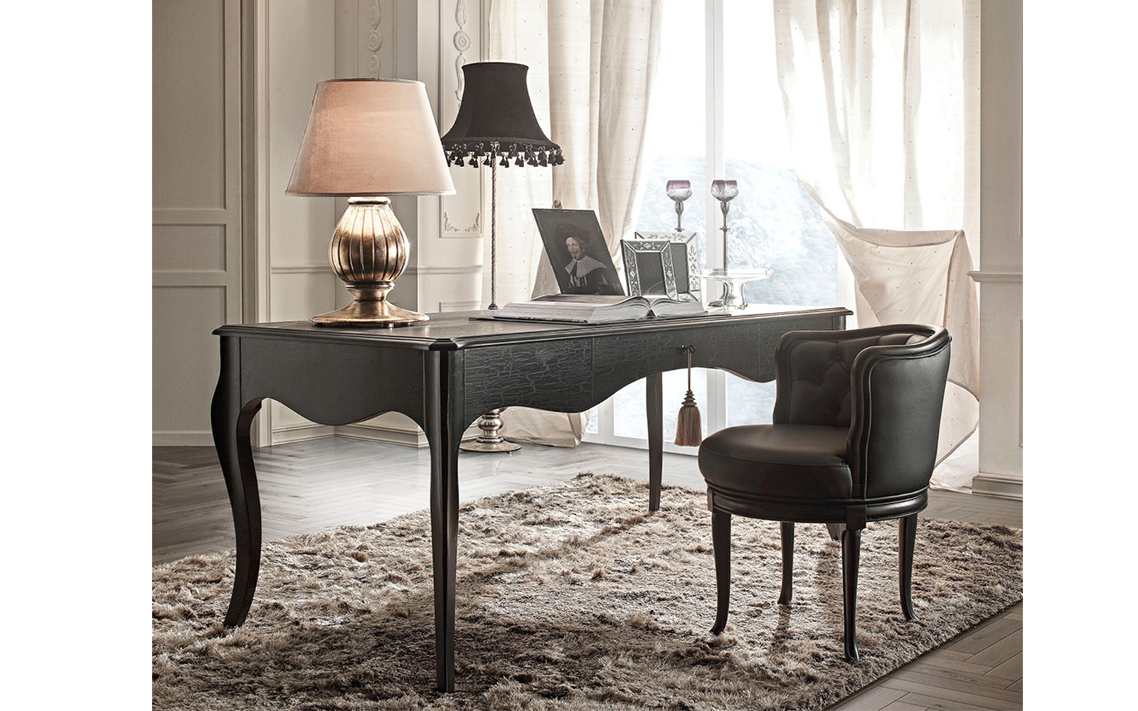 Cu o lungime de 180 cm și o adâncime de 81 cm, biroul oferă un plan de lucru generos, în timp ce cele trei sertare integrează funcționalitate discretă pentru organizarea documentelor, accesoriilor de birou sau obiectelor personale. Structura solidă este completată de opțiunea de personalizare cu diverse tipuri de mânere și finisaje, permițând adaptarea la interioare clasice, glam sau moderne sofisticate.