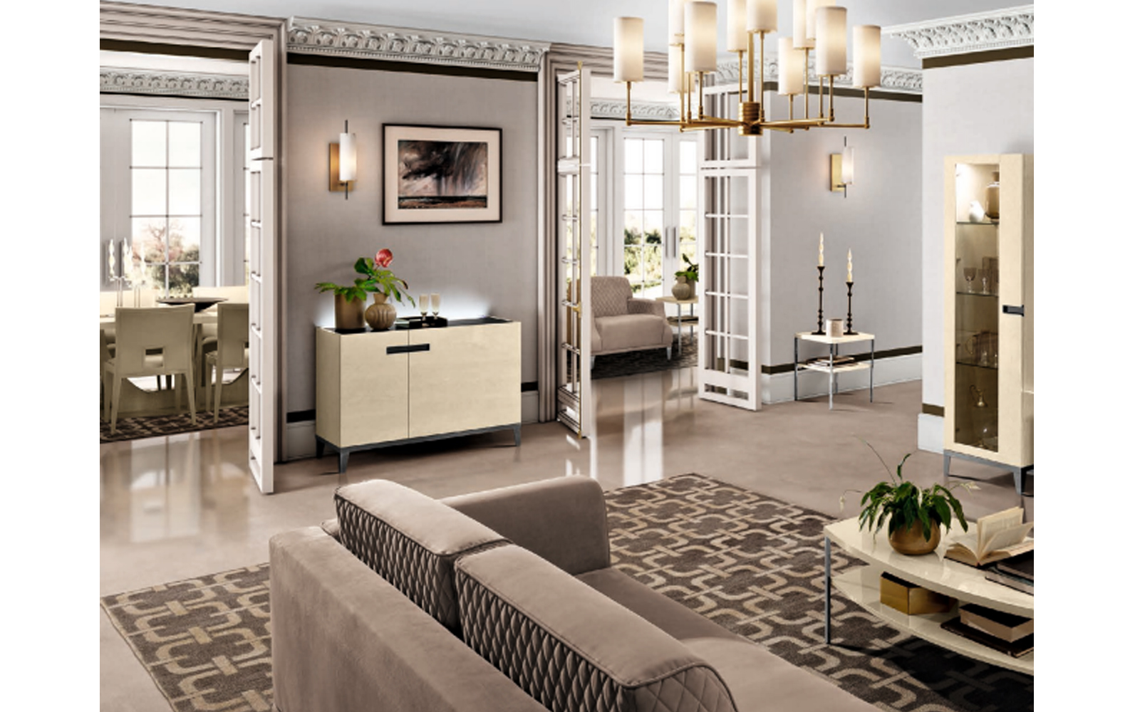 Colecția Almira se remarcă printr-un stil modern și rafinat, inspirat de eleganța contemporană și de preferința pentru detalii fine. Această piesă de mobilier se integrează armonios în livinguri elegante, zone de dining primitoare sau holuri bine structurate, aducând un plus de stil și funcționalitate în amenajare.
