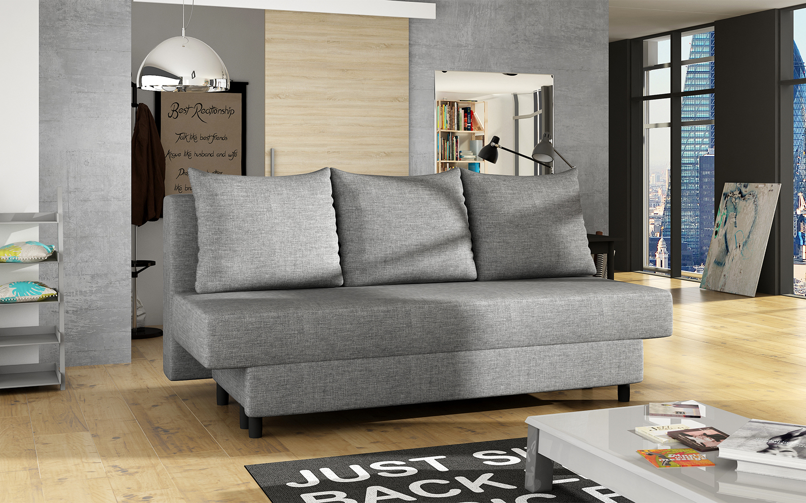 Funcția extensibilă permite transformarea rapidă a canapelei într-un pat de 190×130 cm, ideal pentru odihna zilnică sau pentru momentele în care ai nevoie de un spațiu suplimentar pentru dormit. Sub șezut se află un compartiment de depozitare spațios, perfect pentru lenjerii, perne sau pături, păstrând ordinea în locuință.