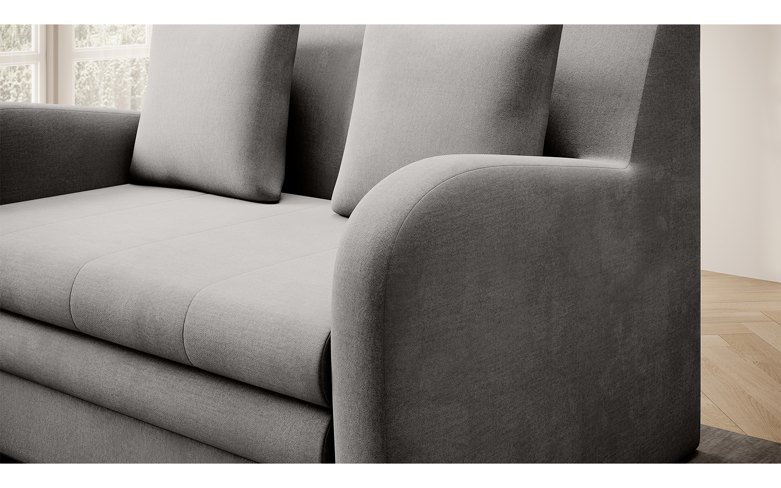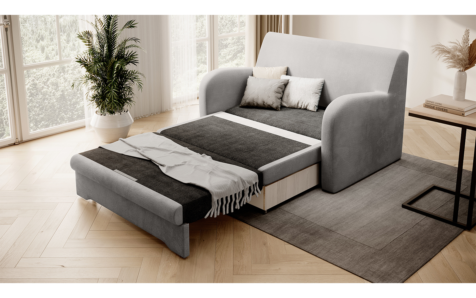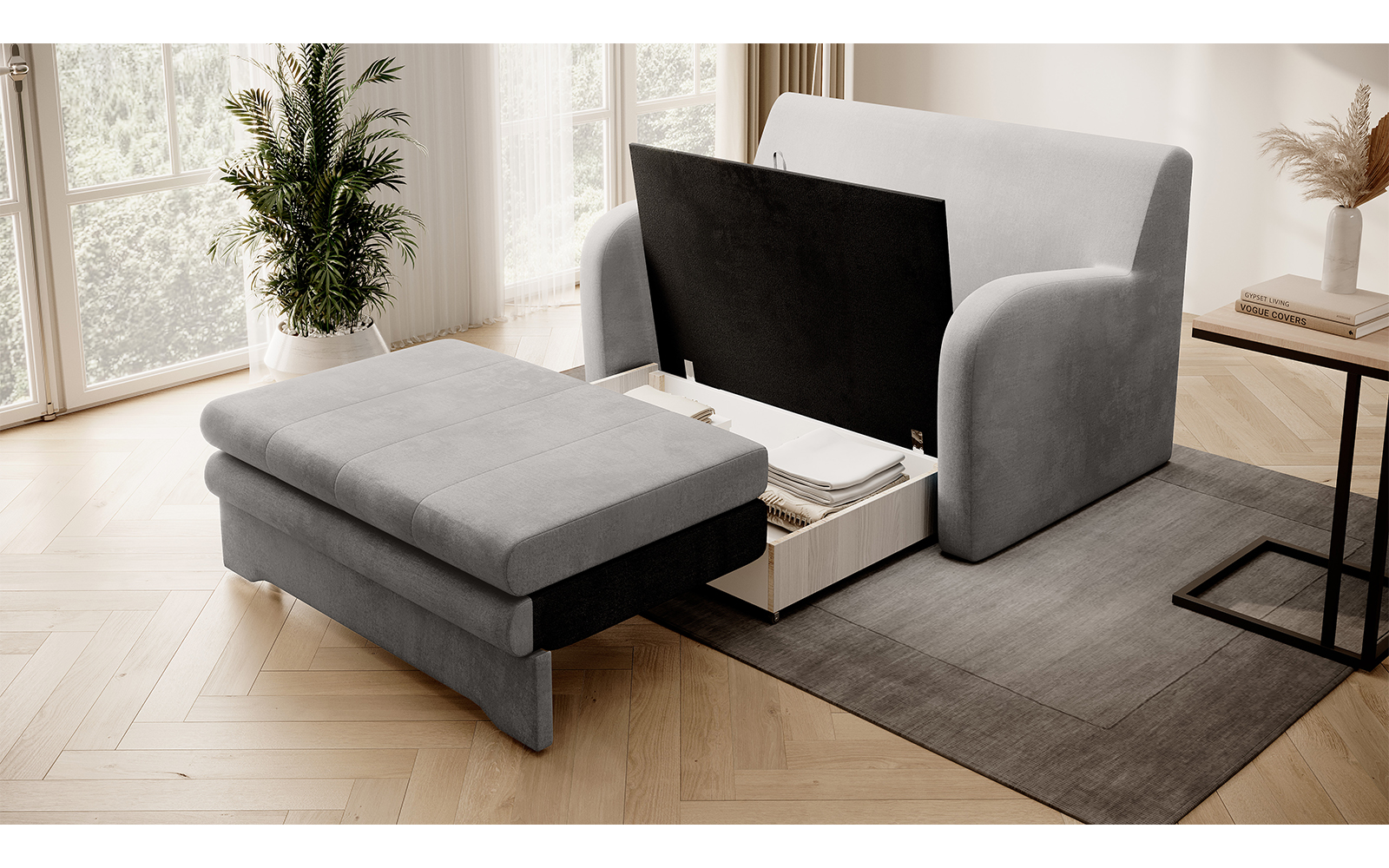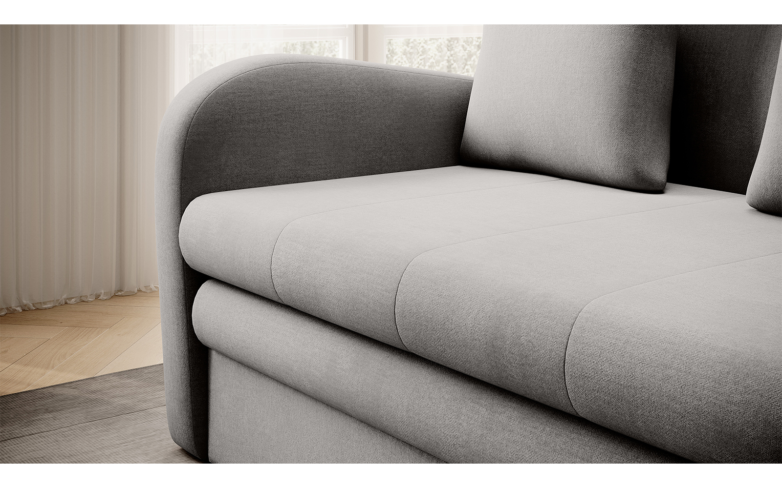 Funcția de extindere permite transformarea rapidă a canapelei într-un pat confortabil cu o suprafață utilă de 111×196 cm, ideal atât pentru utilizare zilnică, cât și pentru momentele când ai nevoie de un spațiu suplimentar pentru odihnă. În plus, modelul este dotat cu un compartiment de depozitare încăpător (85×61×13 cm), perfect pentru lenjerie, perne sau pături, ceea ce sporește gradul de funcționalitate.