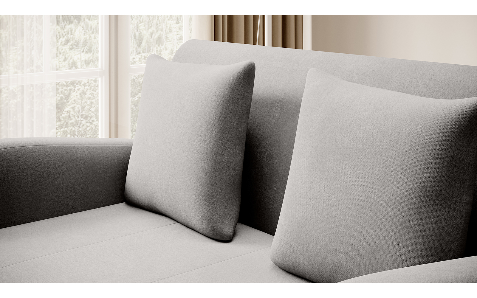 Confortul este asigurat de combinația de spume T28 și T25, care oferă elasticitate, rezistență și un sprijin corect al corpului, prevenind deformările în timp. Tapițeria din poliester de calitate superioară este plăcută la atingere și rezistentă la uzură, fiind disponibilă într-o varietate de culori care permit integrarea facilă în diferite scheme de amenajare.
