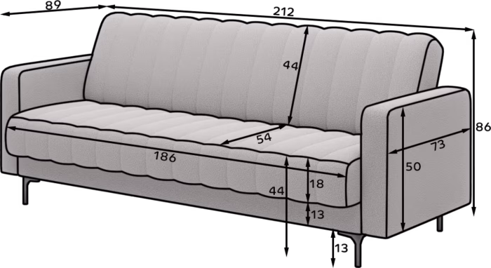 Dimensiunile generoase pentru trei locuri oferă confort real în utilizarea zilnică, menținând totodată o amprentă vizuală aerisită. Picioarele subțiri ridică ușor corpul canapelei de la sol, facilitând curățenia și accentuând estetica modernă. Prin combinația dintre mecanism de extensie fiabil, spațiu de depozitare integrat, materiale durabile și posibilitate de personalizare, această canapea devine o soluție completă pentru locuințele actuale orientate spre confort și funcționalitate.
