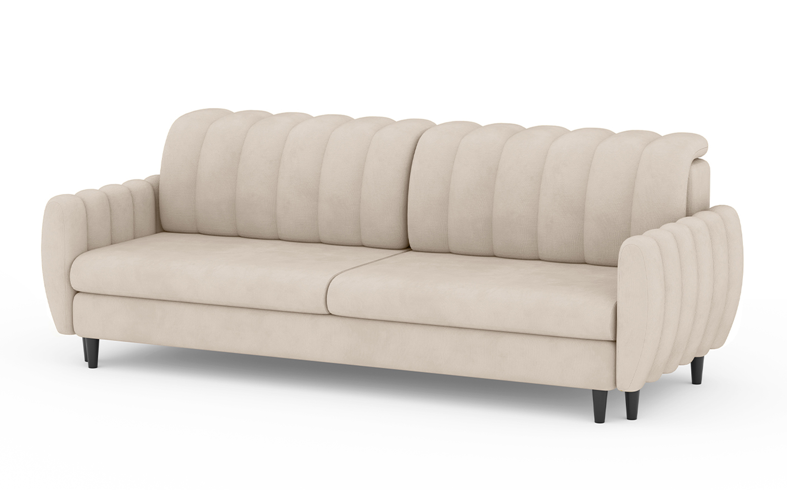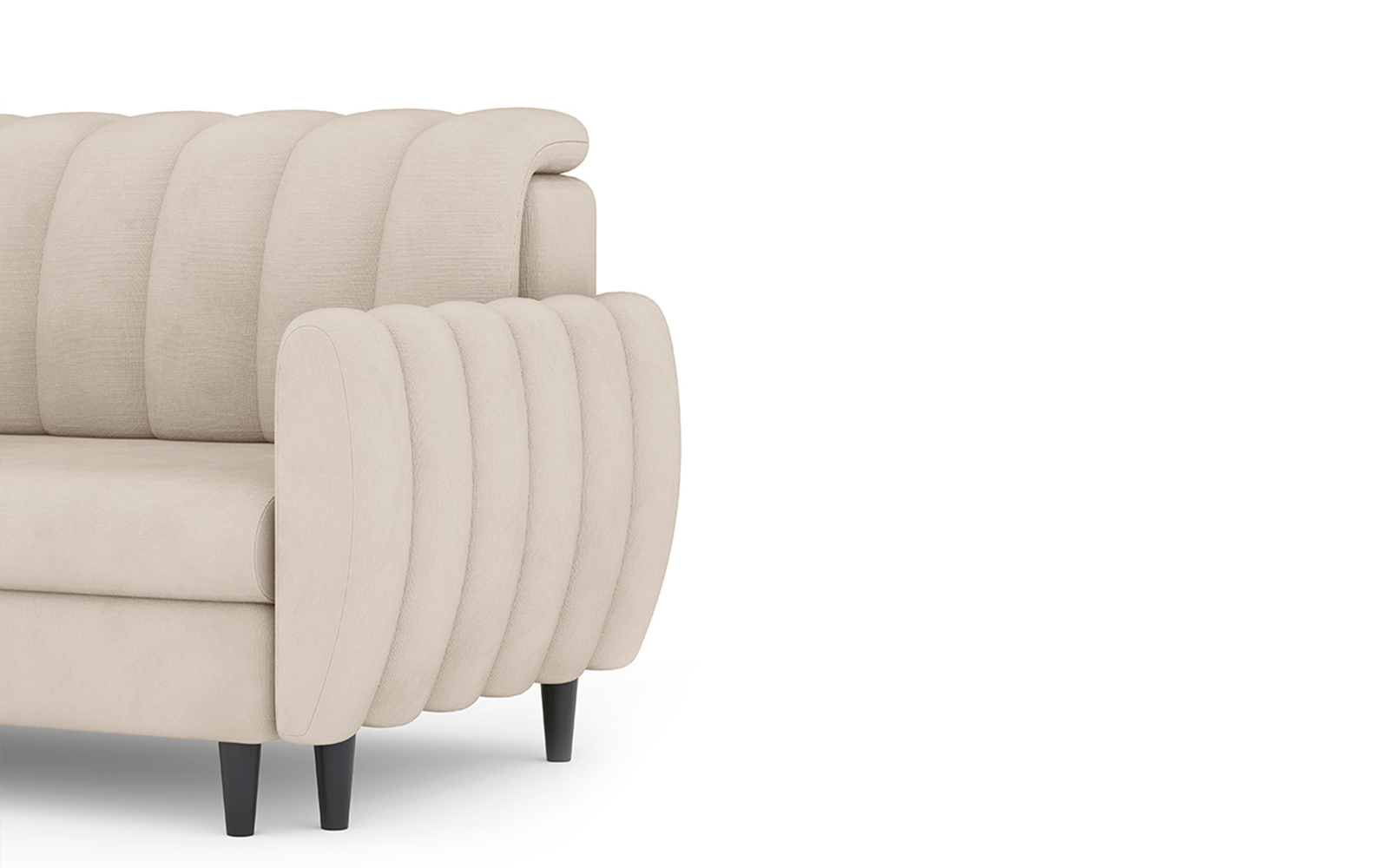 Canapeaua extensibilă Teny este o piesă de mobilier concepută pentru interioare moderne în care designul rafinat trebuie să se îmbine natural cu funcționalitatea zilnică și confortul autentic. Modelul se remarcă prin spătarul elegant, decorat cu linii verticale moi, care creează un efect vizual sofisticat și adaugă profunzime estetică întregii compoziții.