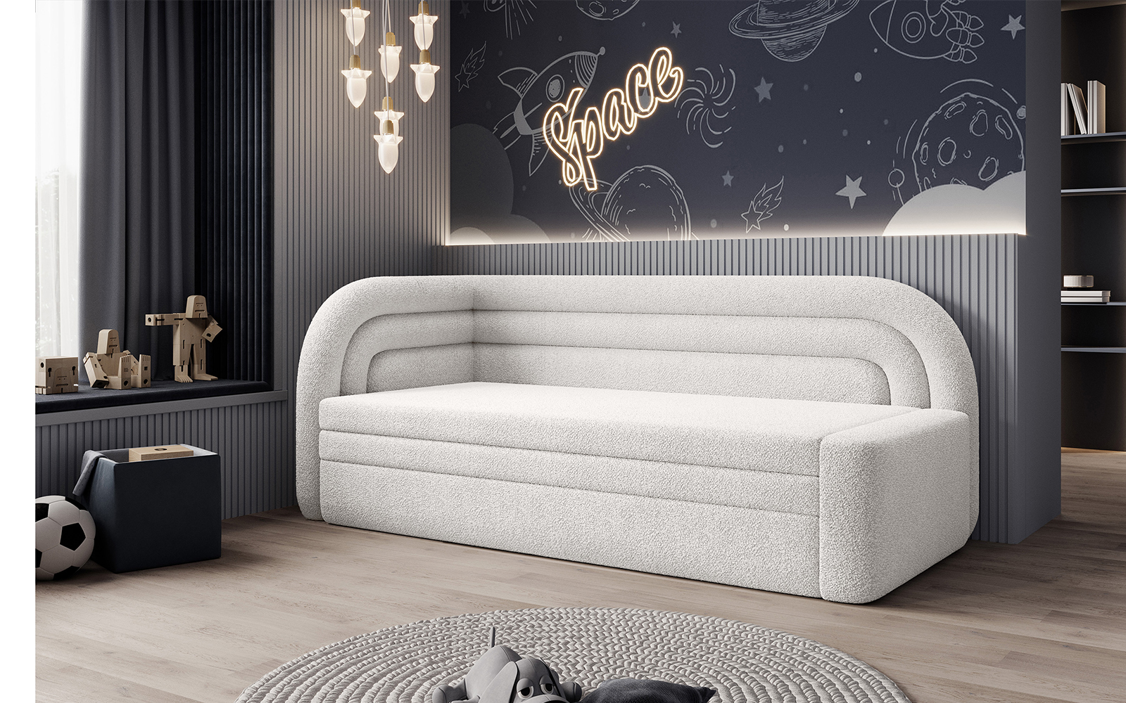 Filo nu oferă doar un aspect frumos, ci și o funcționalitate ridicată. Echipată cu un mecanism de pliere, permite transformarea rapidă într-un pat confortabil. Aceasta este soluția ideală pentru camere de oaspeți, camere de adolescenți sau camere pentru copii, unde fiecare metru pătrat de spațiu este valoros. Interiorul canapelei este umplut cu spumă poliuretanică de înaltă calitate, asigurând confort și ușurință în utilizare.