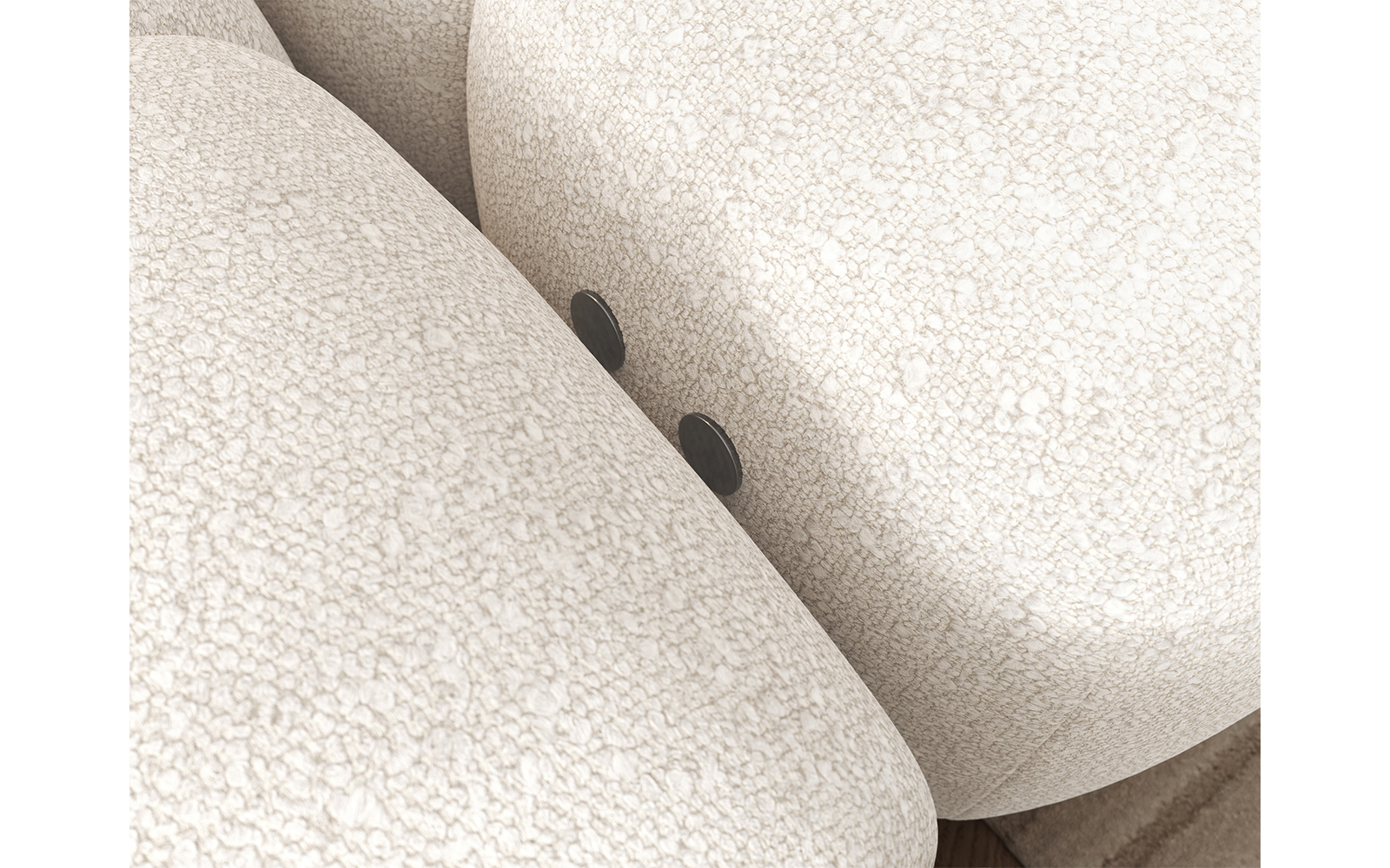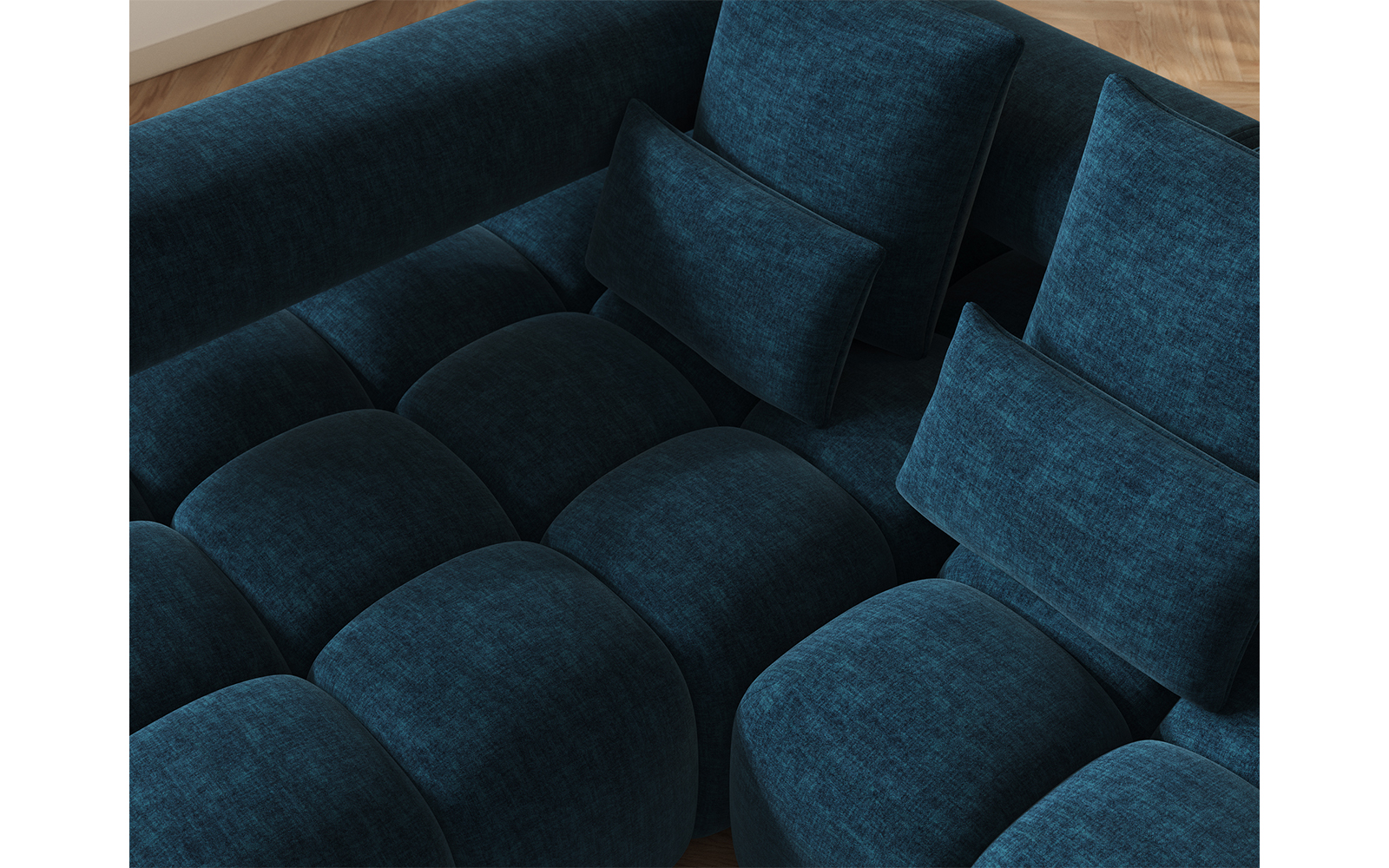 Designul complet tapițat al spătarului permite așezarea colțarului atât lipit de perete, cât și central în living, oferind flexibilitate maximă în amenajare. Brațele rotunjite, linia curată și pernele decorative (incluse în pachet – 6 perne) adaugă un plus de rafinament și confort, completând perfect aspectul modern al piesei.