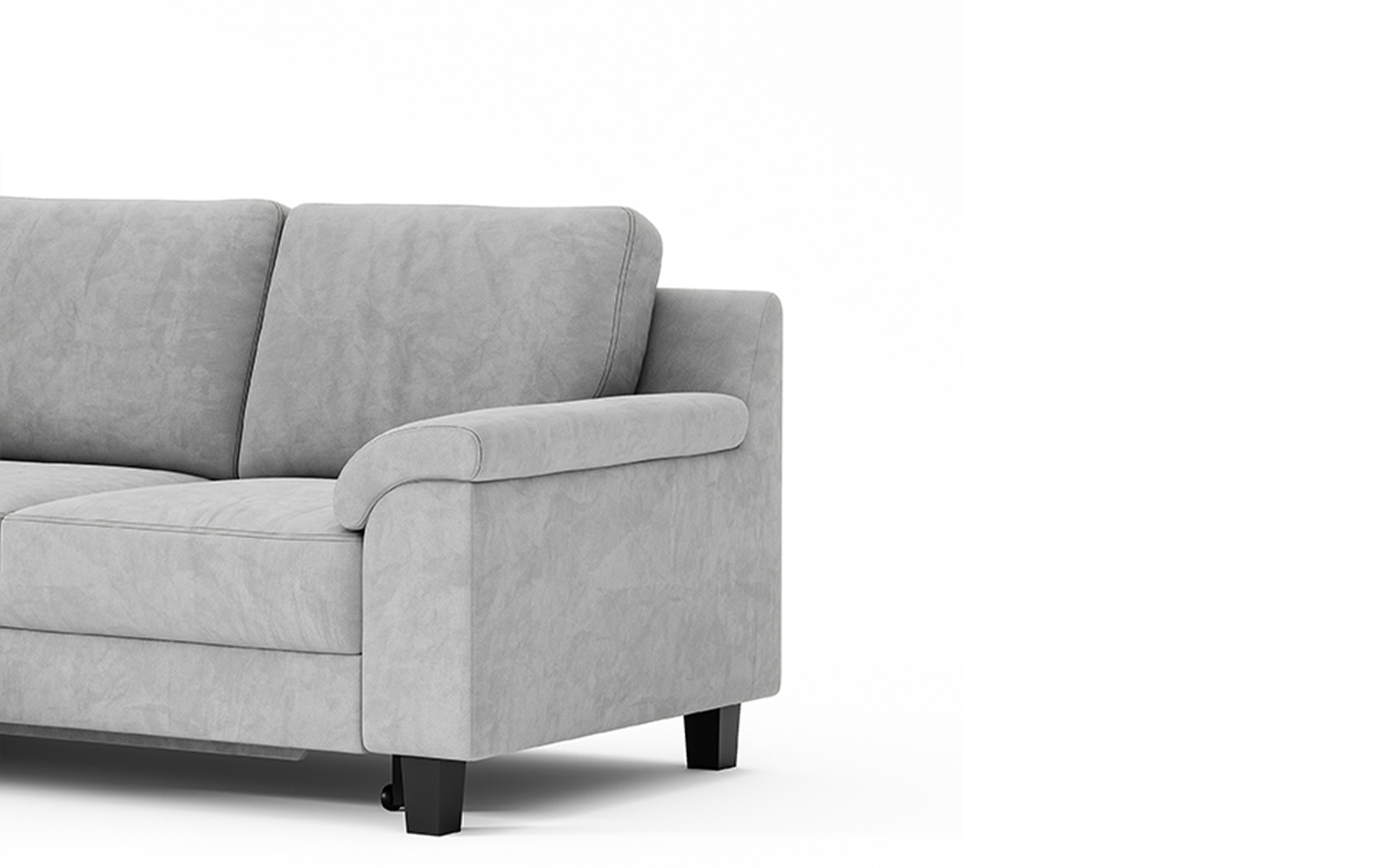 Spătarul înalt, bine proporționat, împreună cu pernele generoase, contribuie la o susținere corectă a spatelui și la o poziție relaxantă, potrivită atât pentru momentele de odihnă de scurtă durată, cât și pentru utilizare îndelungată. Brațele laterale rotunjite completează designul și adaugă un plus de confort, transformând canapeaua într-un spațiu primitor, potrivit pentru întreaga familie.