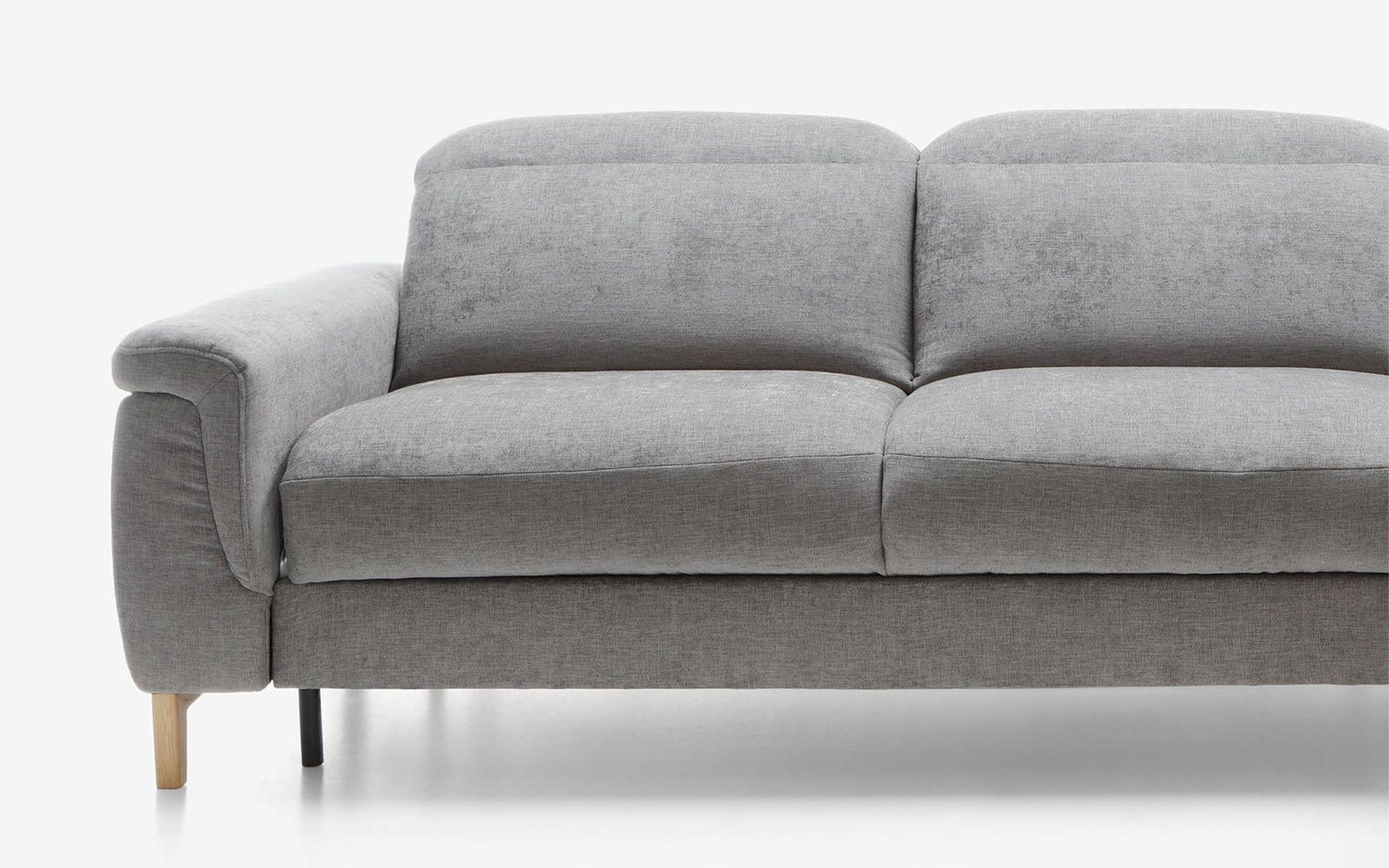 Designul său este dominat de linii curate, forme pline și proporții echilibrate, cu brațe joase și late care adaugă un plus de confort și sprijin. Picioarele colțarului sunt realizate din lemn masiv, disponibile în diverse finisaje (natural, wenge, negru, alb etc.), contribuind la o estetică aerisită, dar și la o stabilitate excepțională. Înălțimea liberă a picioarelor permite și curățarea ușoară sub mobilier.