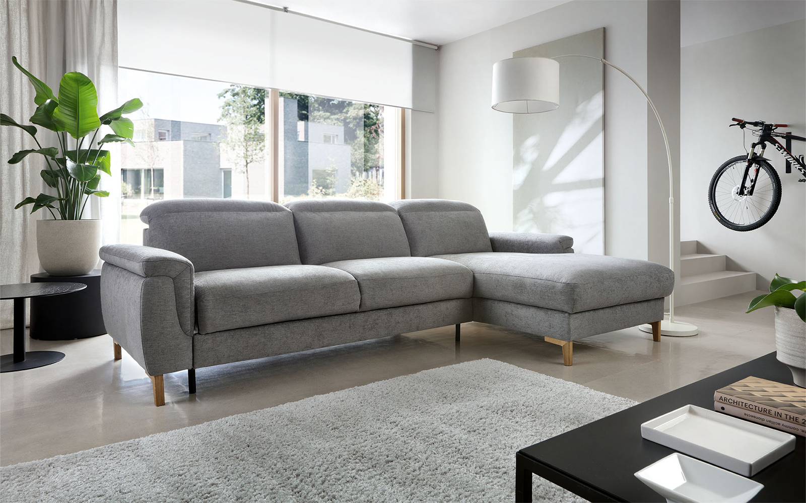 ✔️ Canapea de colț cu design contemporan, linii clare și proporții echilibrate