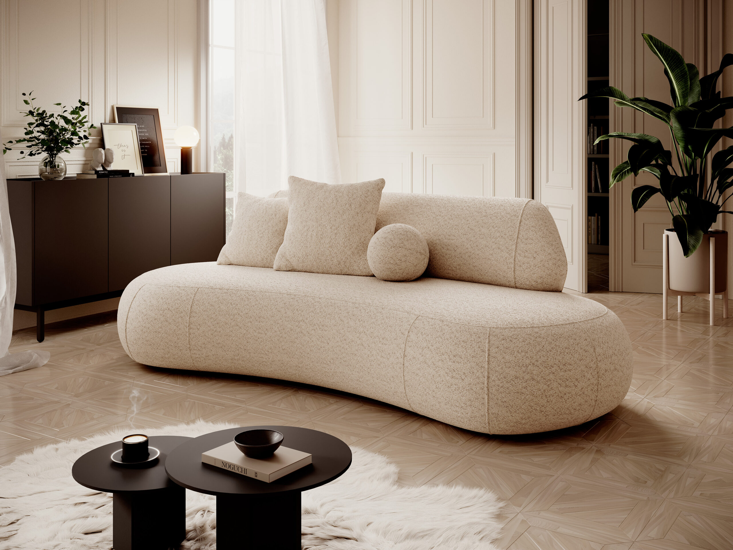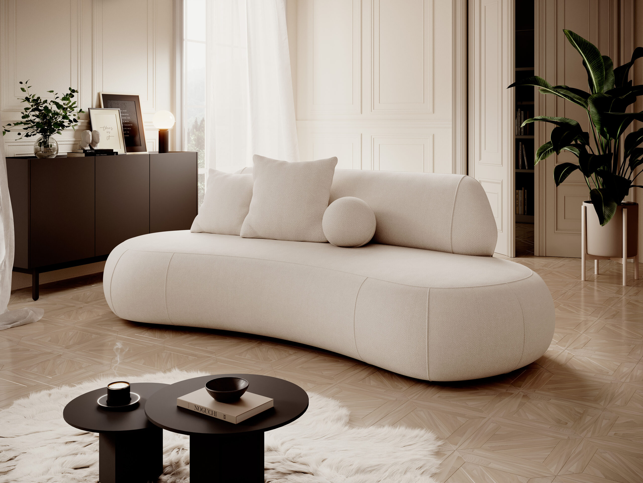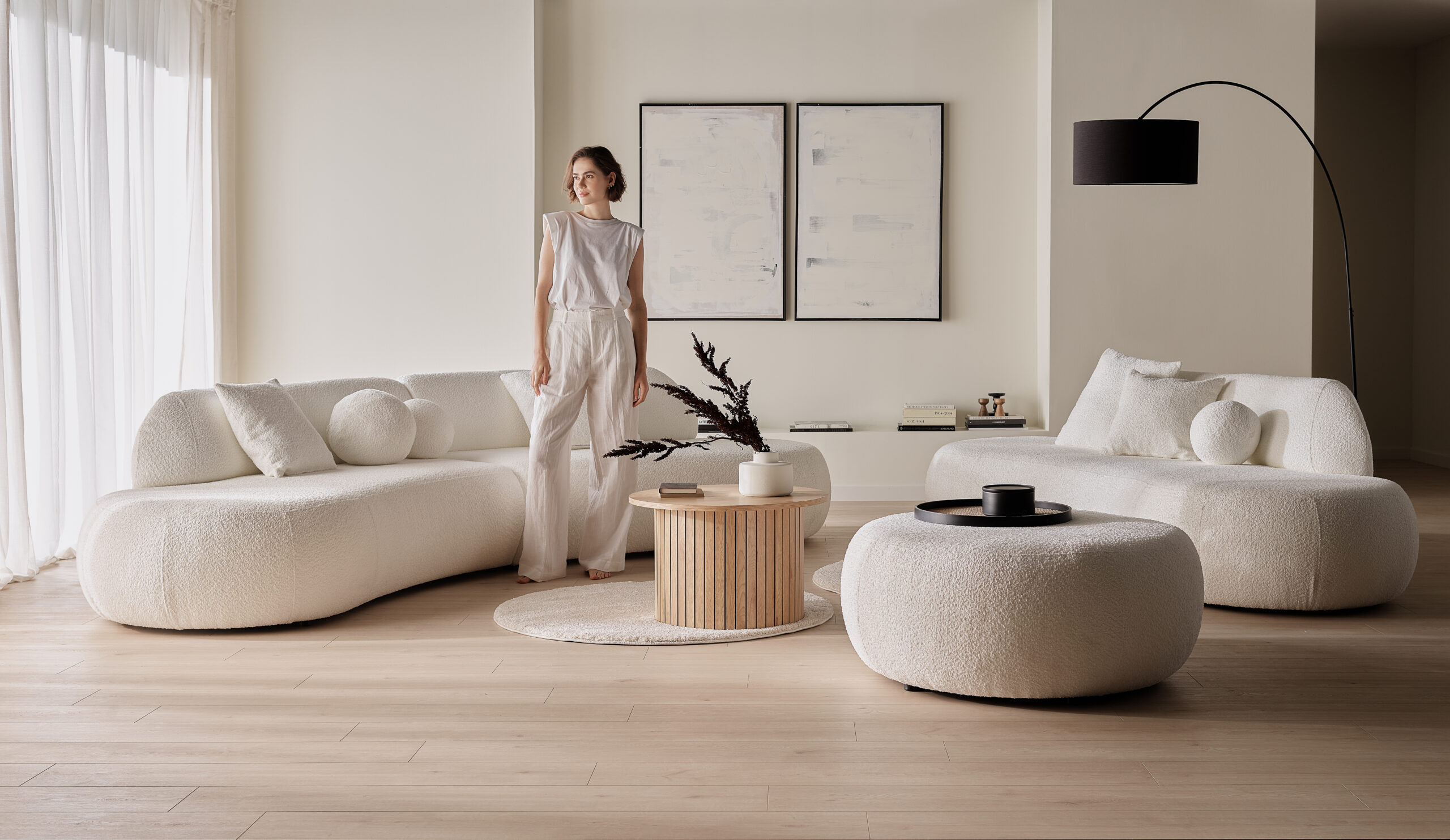 Colecția de canapele modulare cu formă curbată redefinește eleganța și rafinamentul în amenajarea spațiului de zi. Formele fluide, inspirate din designul organic, conferă interiorului un aspect modern, sculptural, dar în același timp primitor și confortabil.