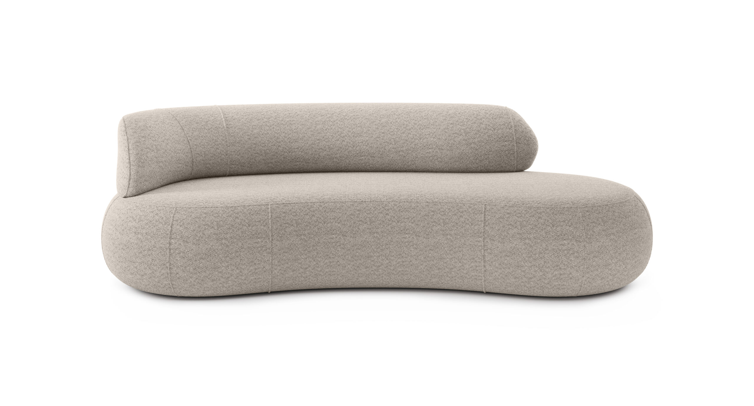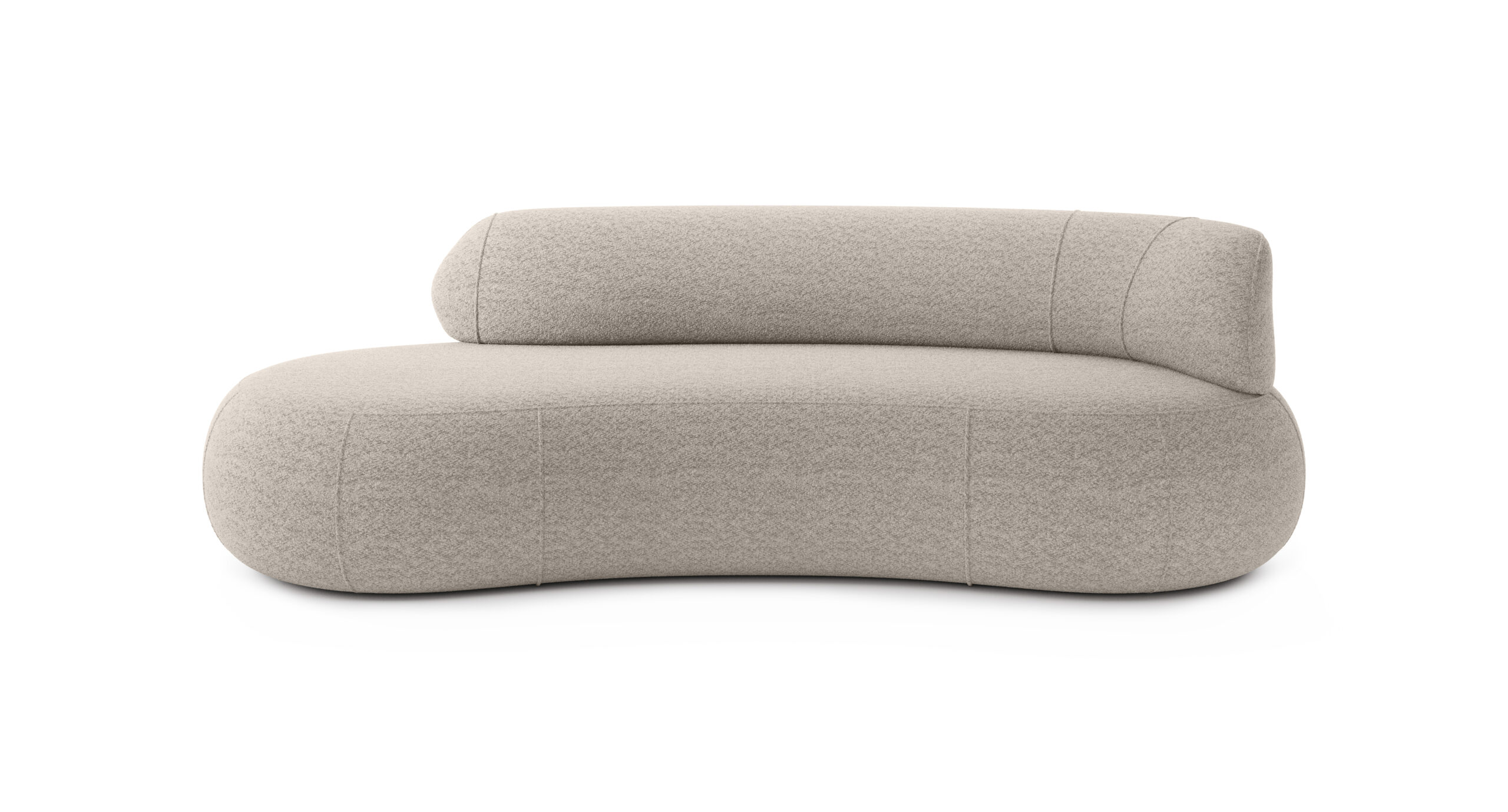 Fiecare modul este conceput pentru a permite o configurare flexibilă, adaptabilă oricărui tip de încăpere. Se pot crea compoziții liniare, asimetrice sau colțare curbate, folosind module cu braț stâng, braț drept, fără brațe sau elemente de capăt curbat. Pouf-ul rotund completează armonios ansamblul, oferind atât funcționalitate, cât și continuitate estetică.