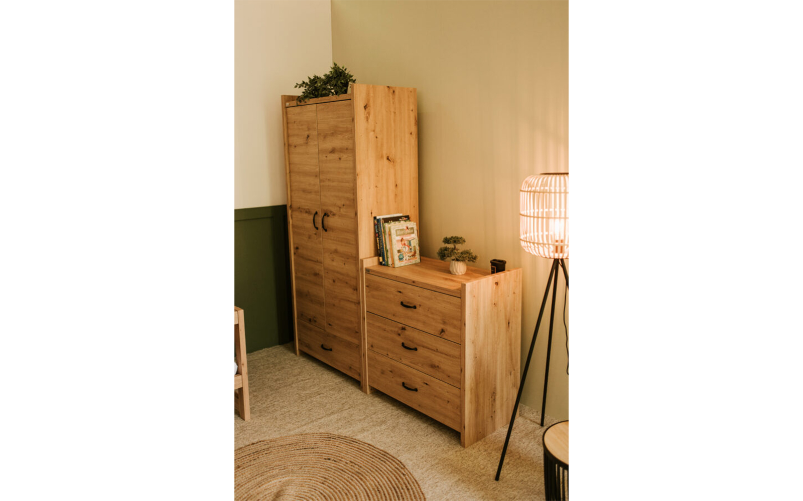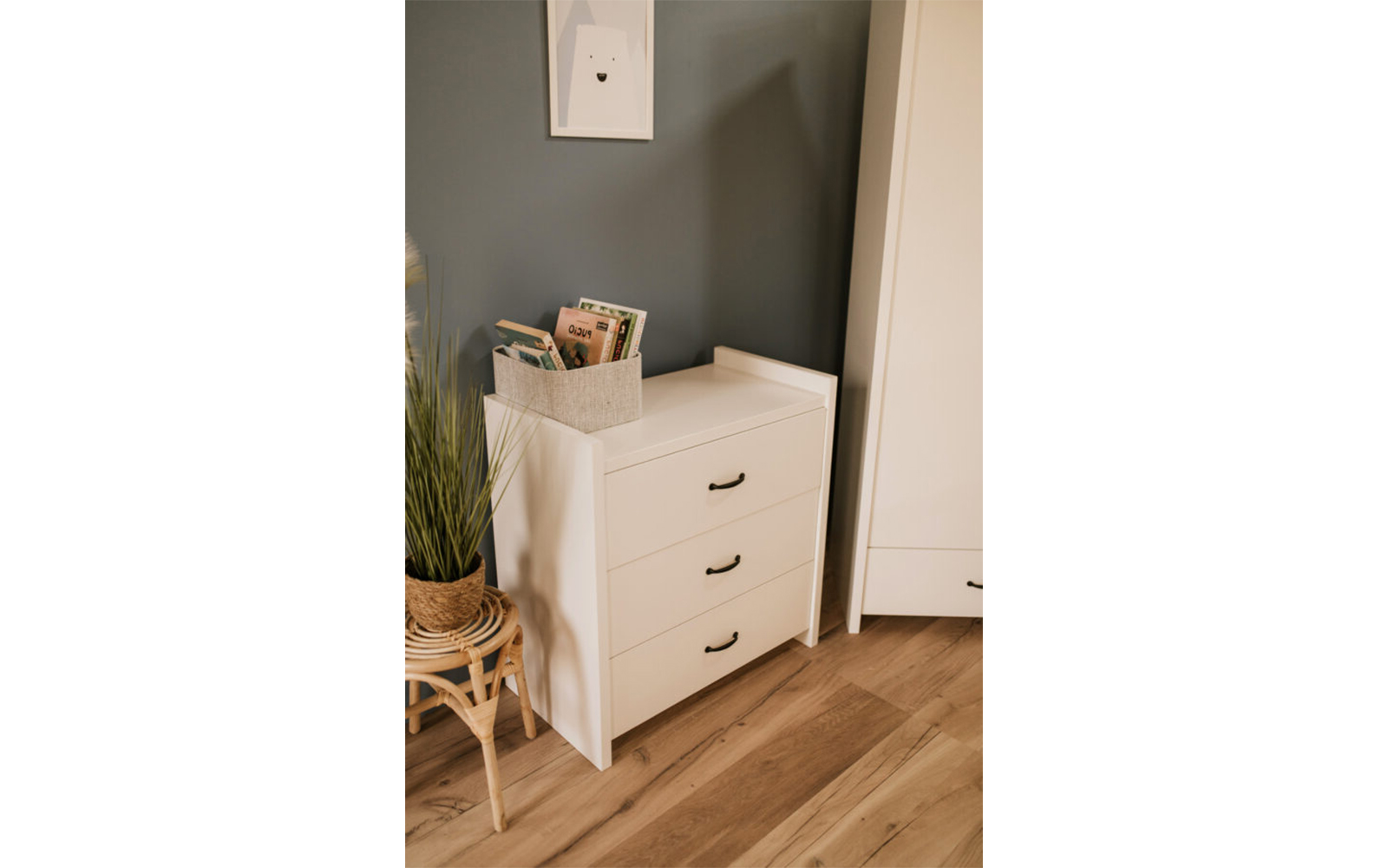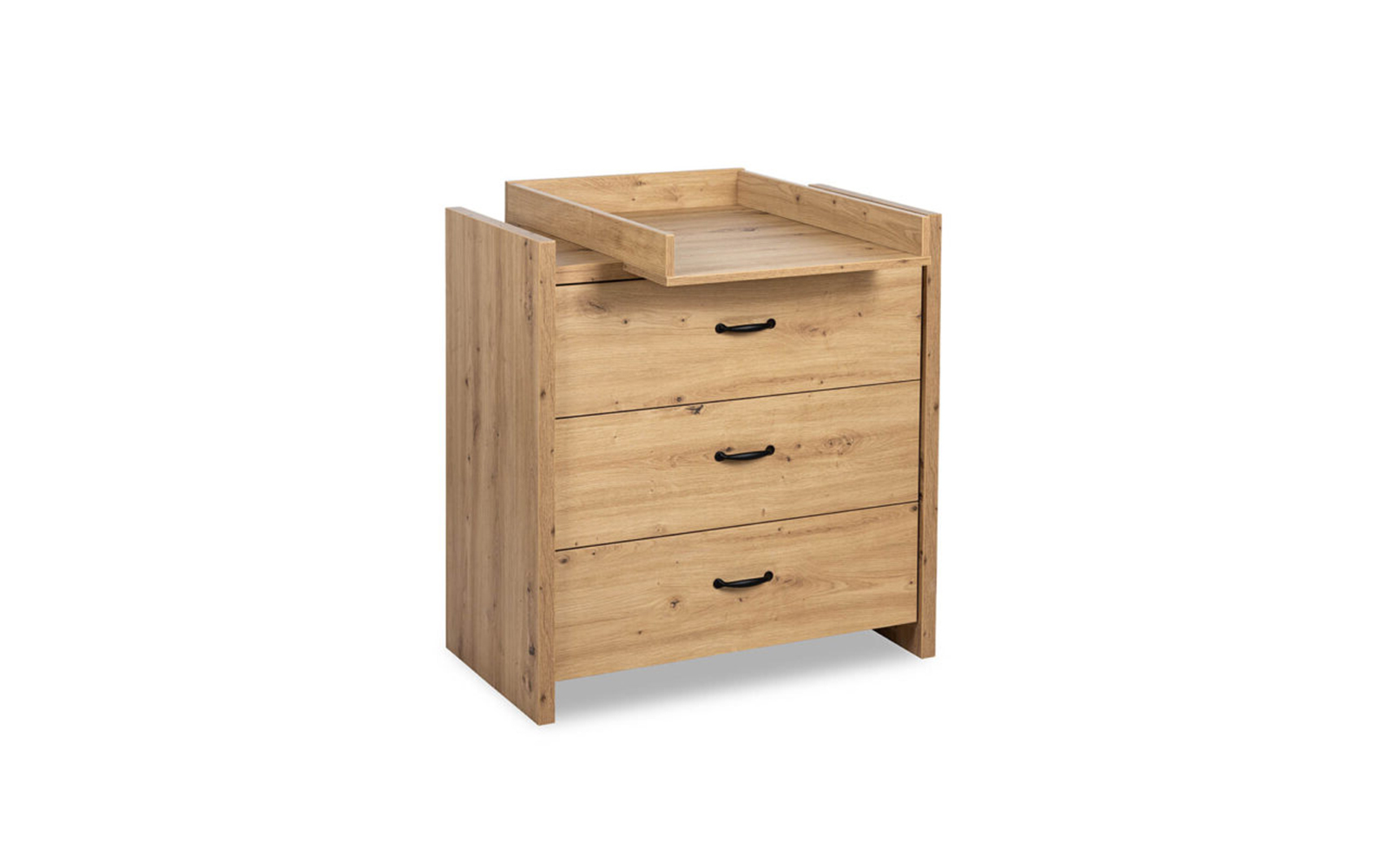 Structura sa robustă și liniile simple, dar rafinate, sunt gândite pentru a rezista în timp, adaptându-se cu ușurință atât nevoilor bebelușului, cât și celor ale copilului în creștere. Cele trei sertare spațioase oferă loc suficient pentru depozitarea hainelor, lenjeriei, accesoriilor sau a produselor de îngrijire, astfel încât totul să fie mereu la îndemână.