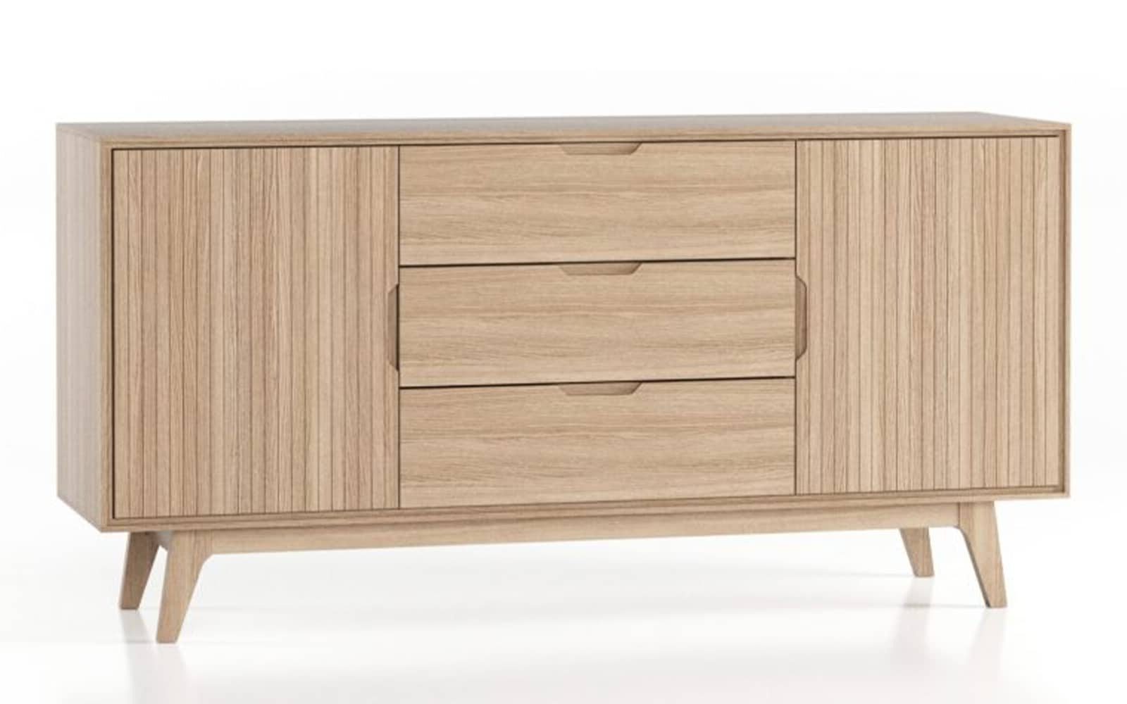 Dimensiunile sale generoase de 1600 mm lățime, 450 mm adâncime și 800 mm înălțime o fac potrivită atât pentru sufragerie, cât și pentru dormitor sau hol. Compartimentele laterale închise sunt ideale pentru depozitarea obiectelor mari, în timp ce sertarele din centru oferă acces rapid la articolele folosite frecvent. Picioarele înalte din lemn adaugă stabilitate și un aspect aerisit. Disponibilă la comandă, comoda Brooklyn 2D3SH este alegerea perfectă pentru un interior bine organizat și elegant.