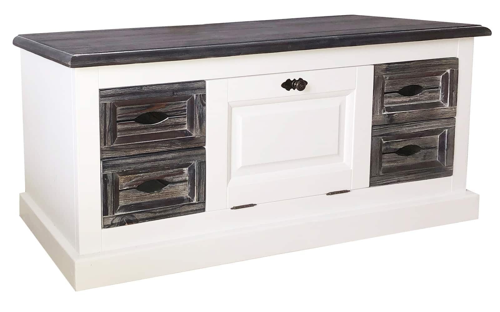 Băncuță Harley, Lemn masiv, 5 compartimente, 113x38x51, Alb/Maro