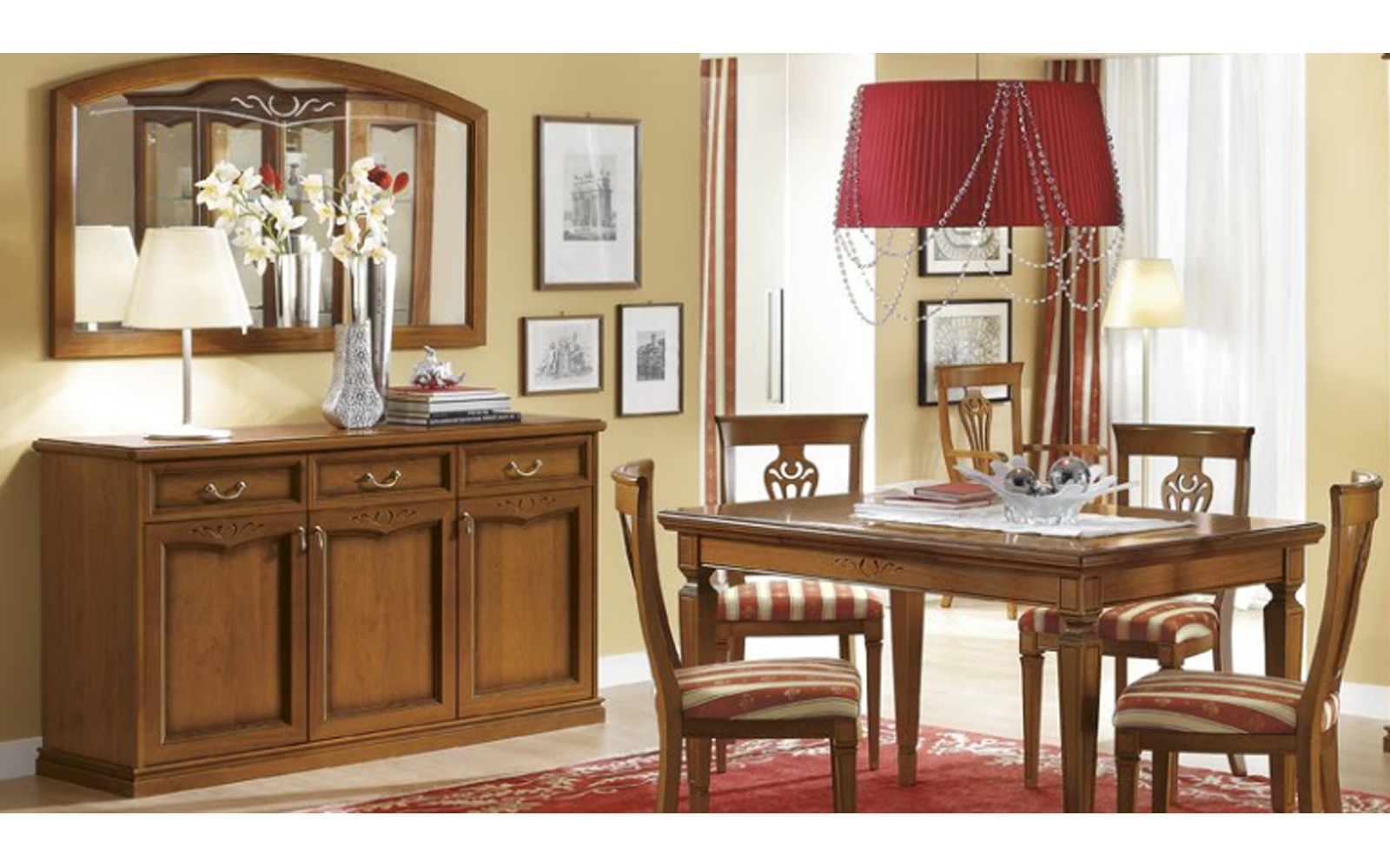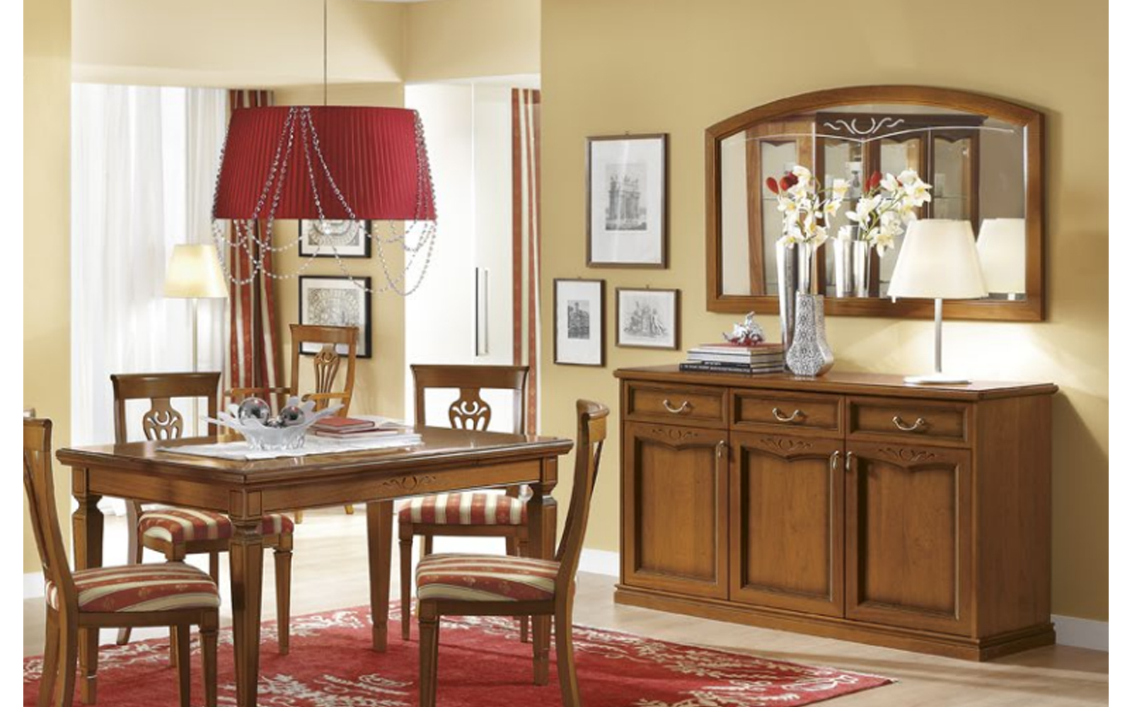 Designul piesei este clasic, cu proporții bine echilibrate și detalii discrete, care îi conferă o eleganță atemporală. Poate fi amplasat atât ca piesă centrală într-o zonă de dining, cât și într-un living, un hol generos sau chiar într-un birou decorat clasic.