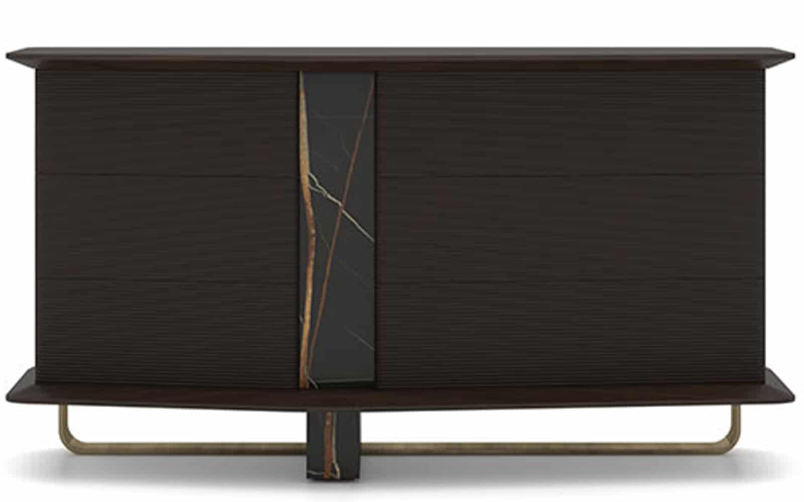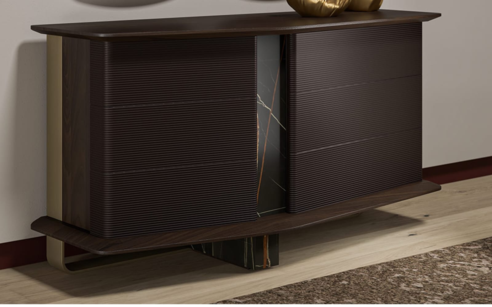 Comoda Maura este expresia rafinamentului contemporan și a luxului discret, fiind concepută pentru a adăuga un accent sculptural și sofisticat în orice spațiu interior. Cu un design impunător și o estetică modernă, această piesă se remarcă prin detalii atent lucrate și materiale de înaltă calitate, transformând spațiul în care este amplasată într-o zonă de impact vizual.