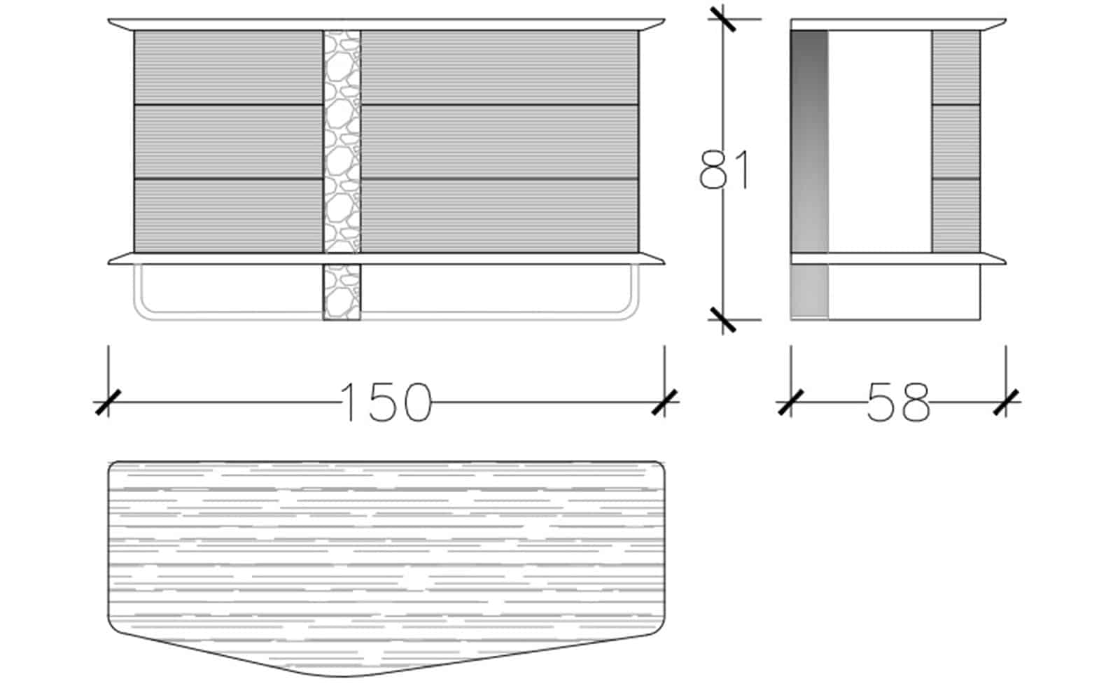 Cu o lungime de 150 cm, înălțime de 81 cm și adâncime de 58 cm, comoda oferă un spațiu generos pentru depozitare, fără a compromite eleganța designului. Ușile frontale ascund compartimente ample, perfecte pentru a păstra obiecte esențiale, iar finisajele interioare sunt tratate cu aceeași grijă ca și cele exterioare.