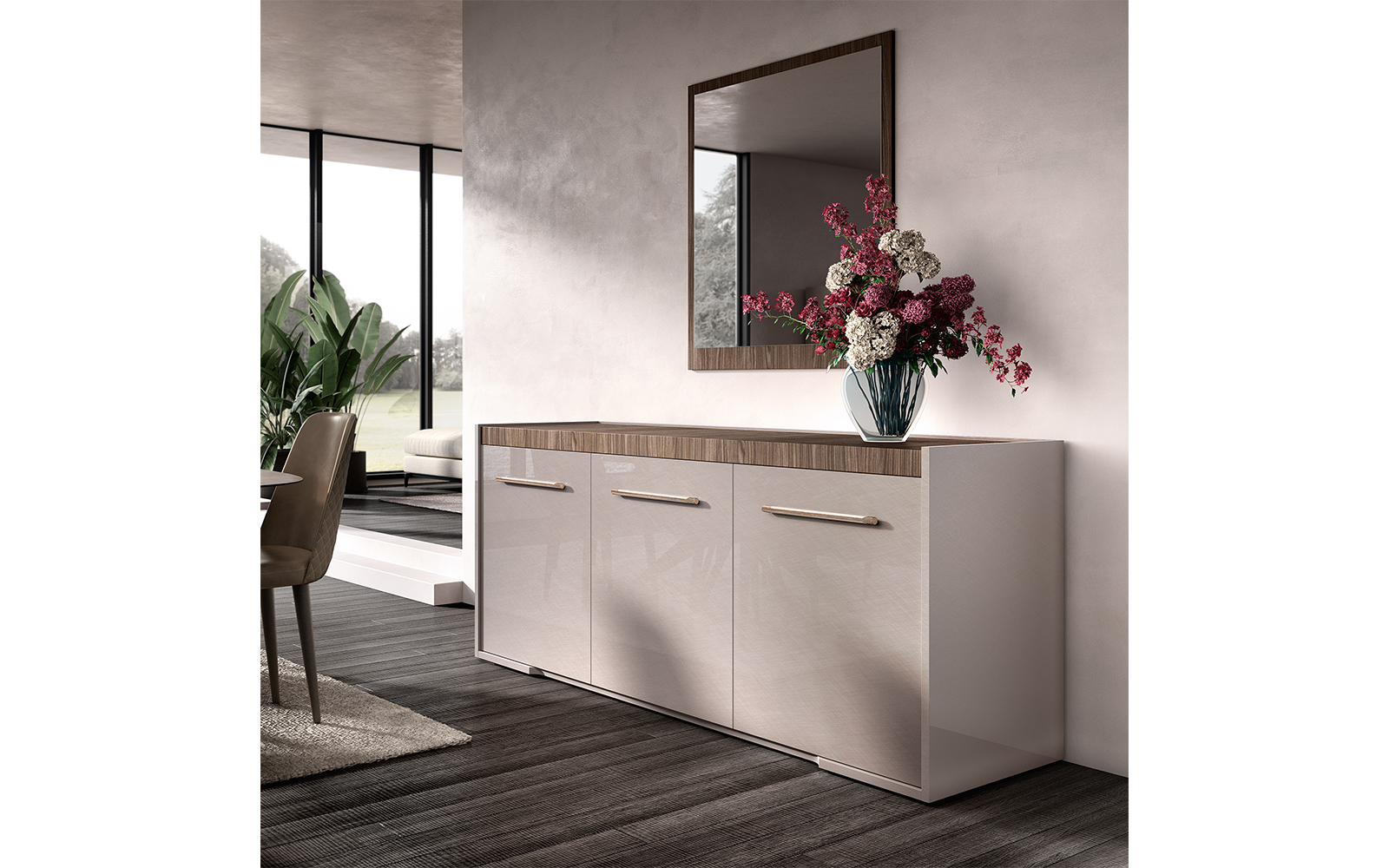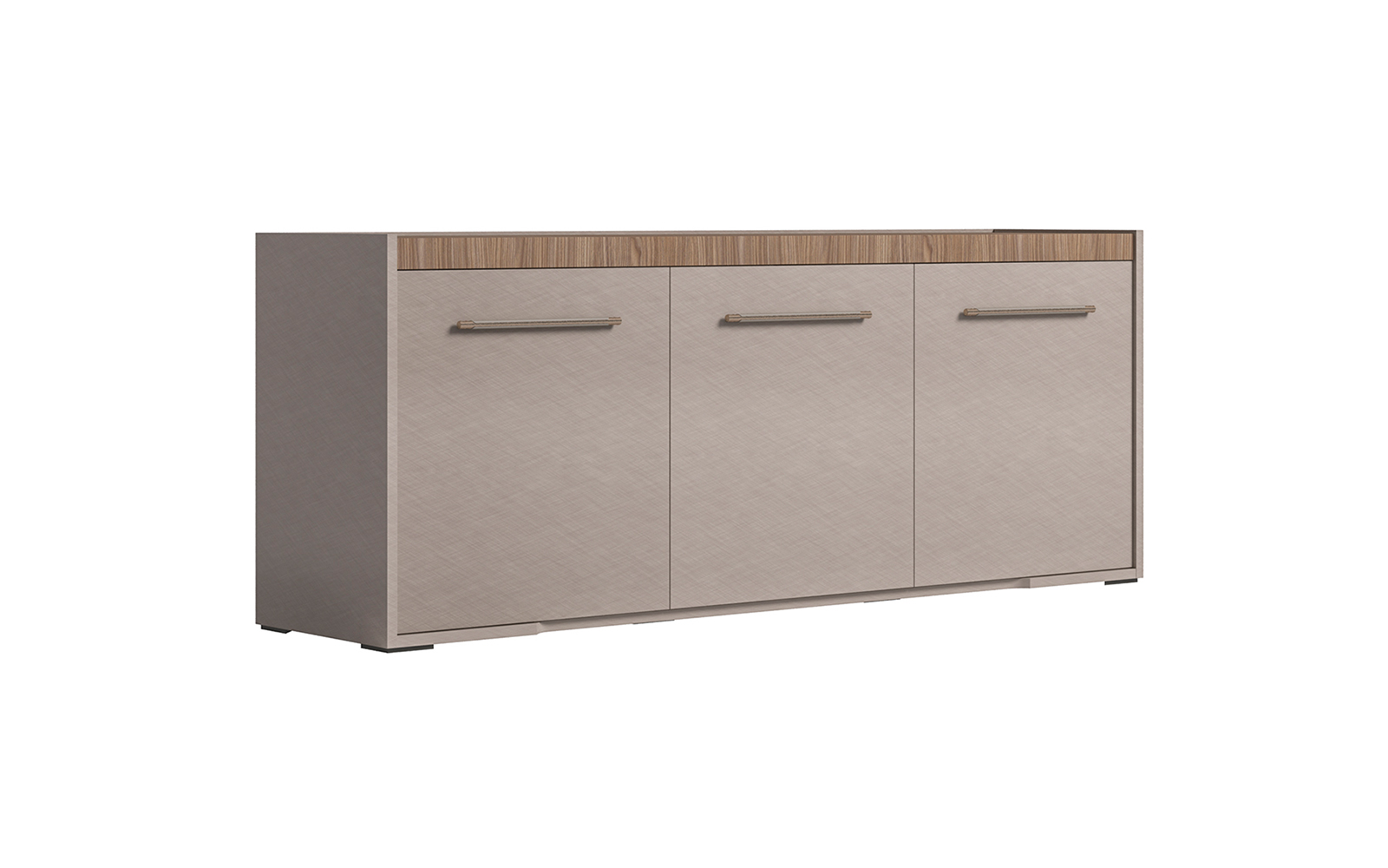 Cele trei uși dispun de un sistem de închidere soft, care asigură o utilizare discretă și plăcută, protejând structura în timp și conferind o senzație de rafinament la fiecare deschidere. Interiorul este compartimentat astfel încât să permită organizarea obiectelor voluminoase, textilelor, accesoriilor decorative sau a veselei, adaptându-se cu ușurință atât nevoilor funcționale, cât și celor estetice.