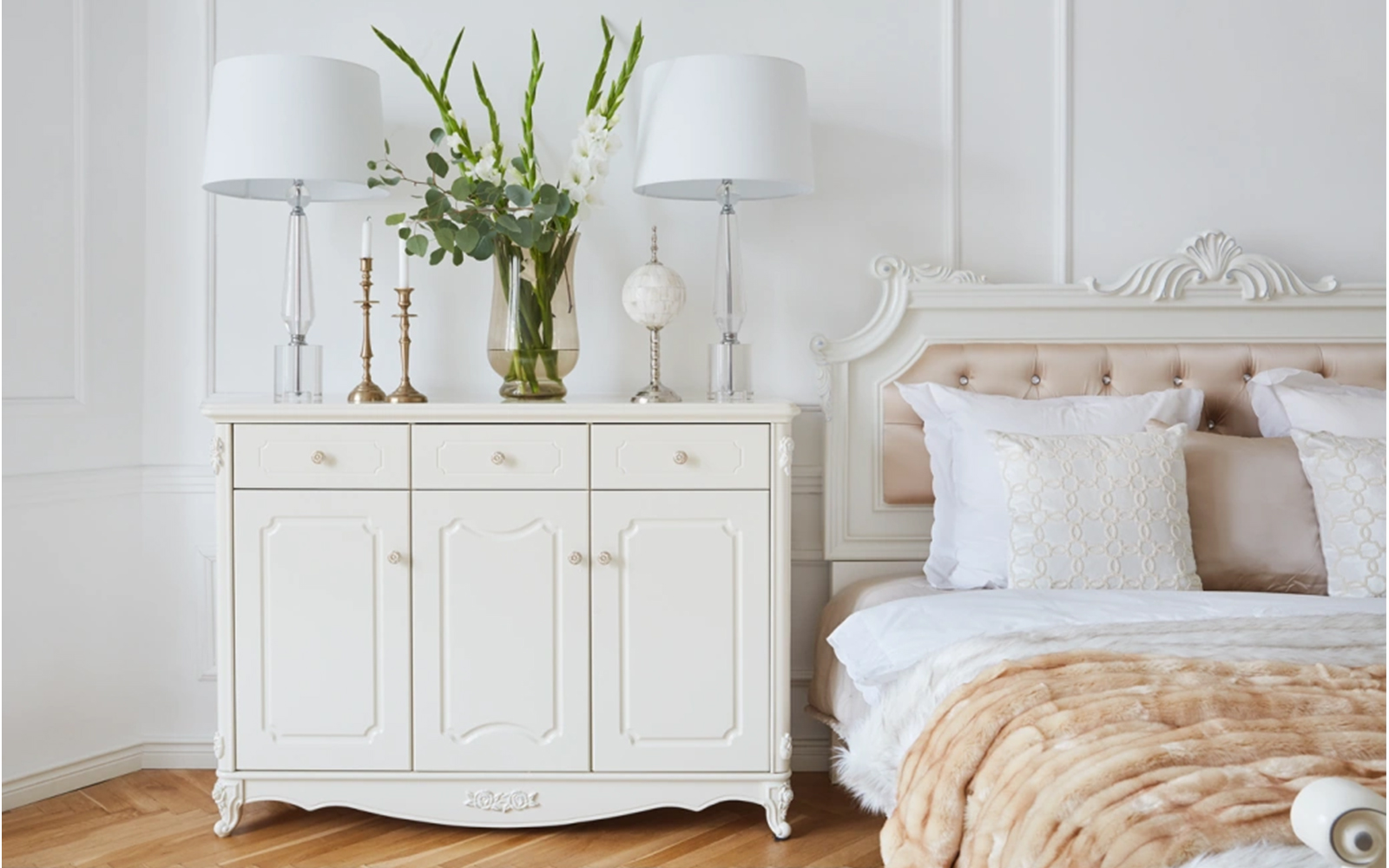 Comoda Paris este o piesă de mobilier rafinată, inspirată din eleganța stilului francez clasic, concepută pentru a aduce un plus de lumină, delicatețe și armonie în orice interior. Cu un design sofisticat și detalii atent lucrate, această comodă devine un element central în amenajare, îmbinând perfect estetica decorativă cu funcționalitatea practică.