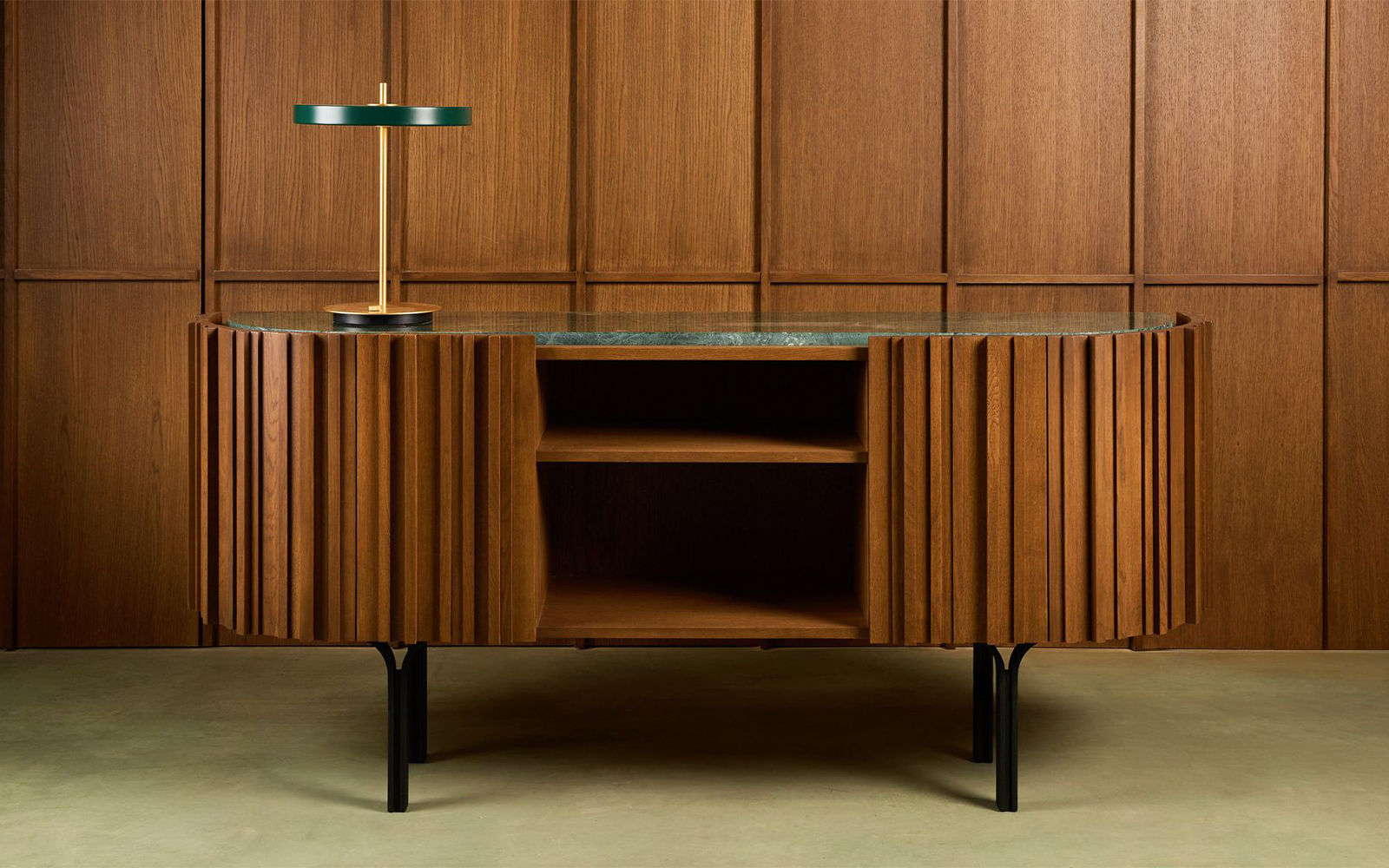 • Comodă premium cu design sculptural și finisaje sofisticate