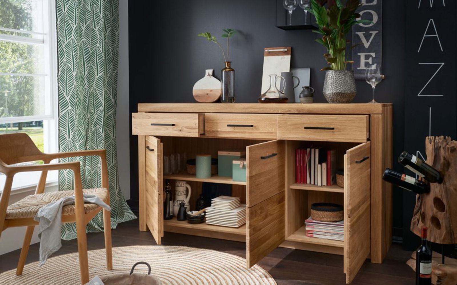 Designul său este definit de proporții echilibrate și linii clare, care creează o estetică sofisticată, dar discretă. Fiecare fibră a lemnului scoate la iveală un desen unic, conferind piesei un caracter autentic și o frumusețe naturală care nu se demodează niciodată. Dimensiunile generoase – 170,5 cm lățime, 92 cm înălțime și 45 cm adâncime – o transformă într-o piesă impunătoare, capabilă să devină punctul central al zonei de living, dining sau chiar al unui birou elegant.