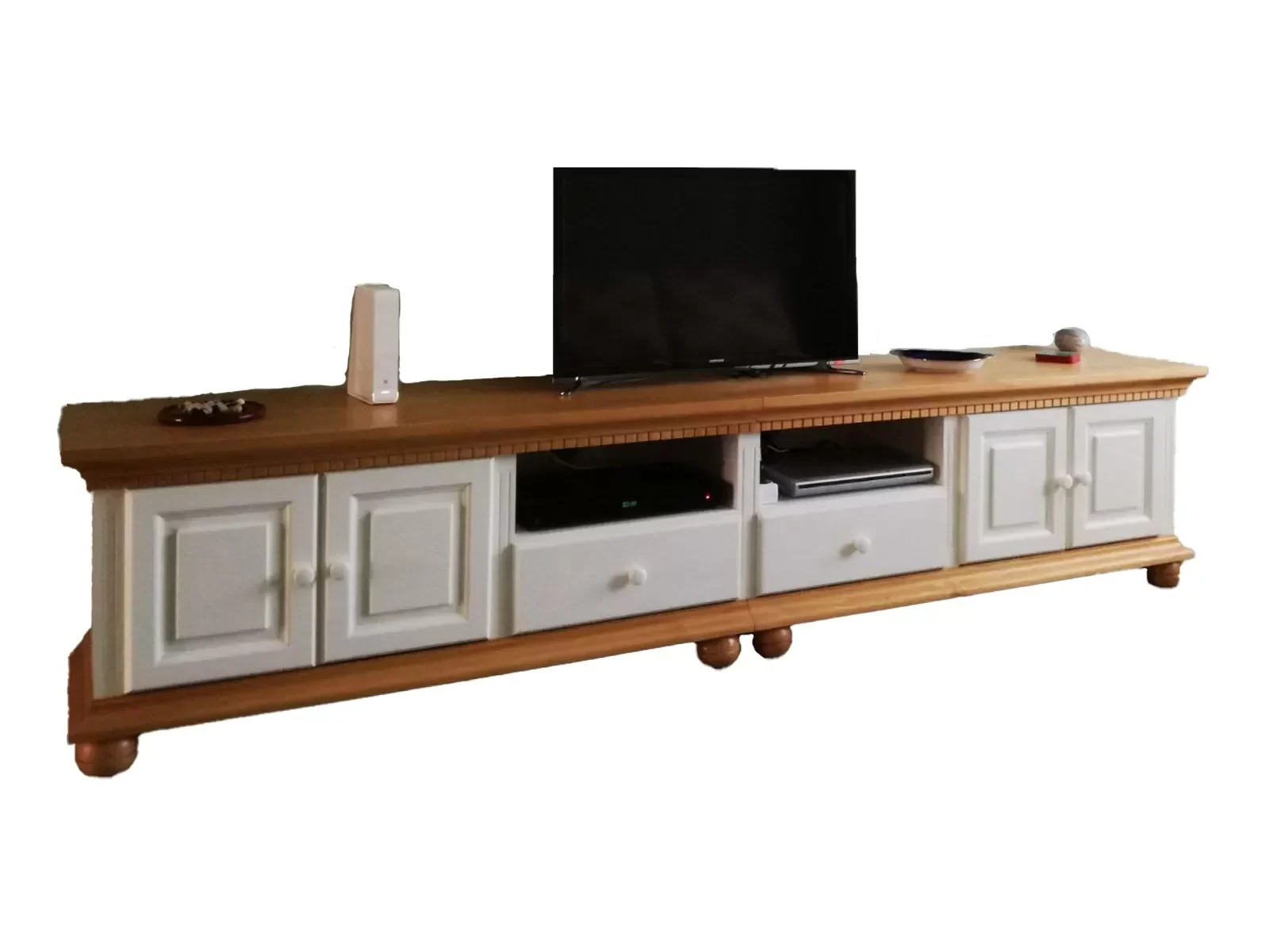 Comodă TV Margaret, Lemn masiv, 250x45x55cm, Alb/Natur