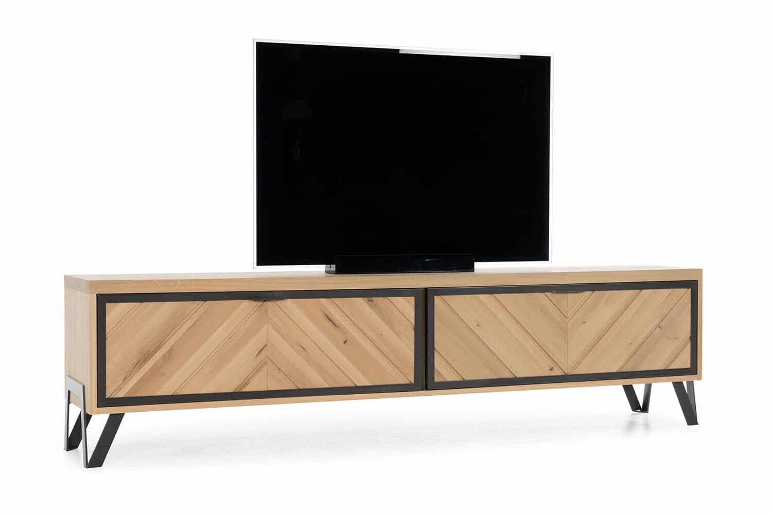 Comoda TV din stejar masiv din colecția Relief este o piesă de mobilier modernă și elegantă, perfectă pentru orice living.
