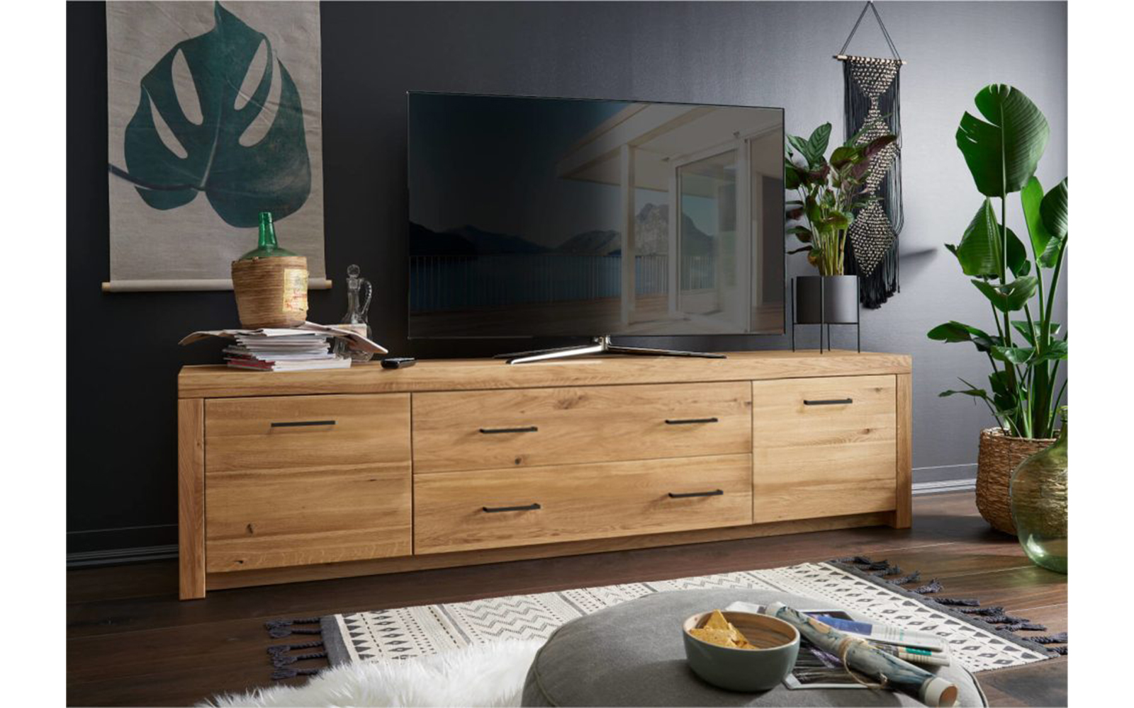 Comoda TV Toscana III este o piesă impunătoare de mobilier, gândită pentru cei care doresc să îmbine funcționalitatea generoasă cu eleganța rafinată a stejarului masiv. Prin dimensiunile sale ample și prin construcția solidă, această comodă devine elementul central al zonei de living, oferind atât un suport stabil pentru televizoare de mari dimensiuni, cât și un spațiu de depozitare versatil.