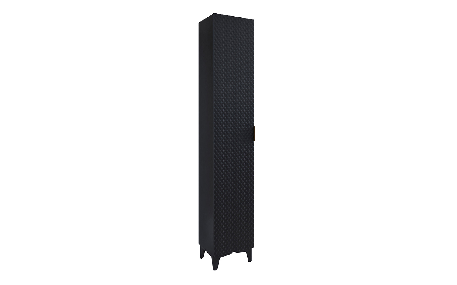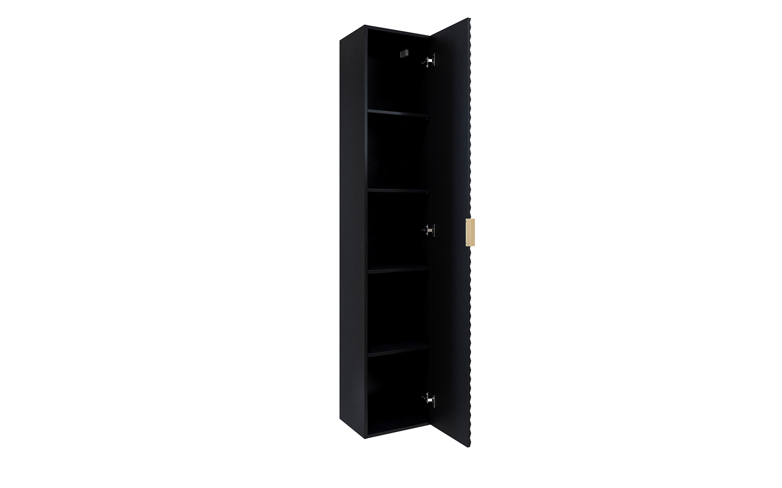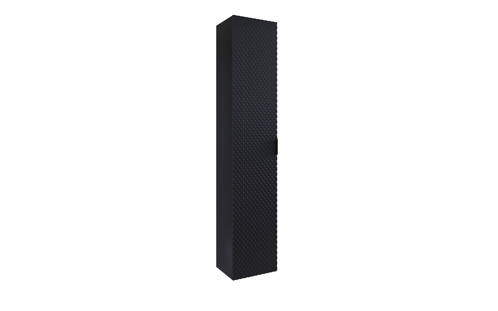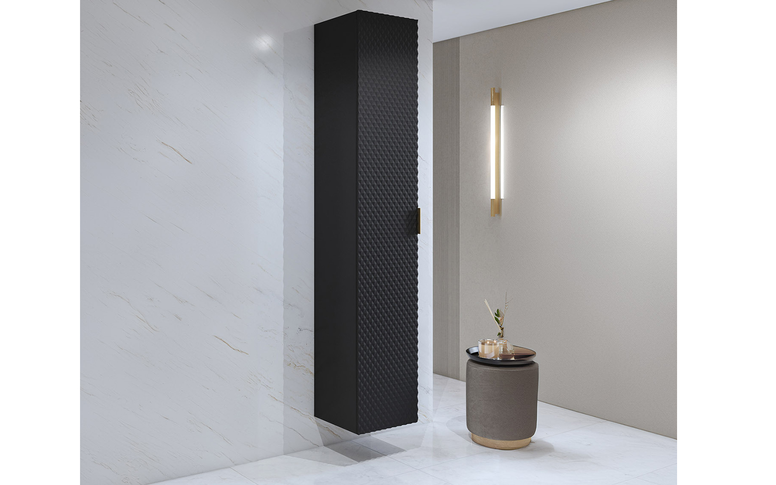Estetica sa rafinată se evidențiază prin frontul realizat din MDF de înaltă calitate, cu un finisaj negru texturat care oferă o senzație tactilă unică și un aspect vizual profund. Carcasa în nuanța Black Onyx completează designul, conferind piesei un caracter sobru, dar sofisticat, potrivit atât pentru băi minimaliste, cât și pentru interioare cu accente industriale sau contemporane.