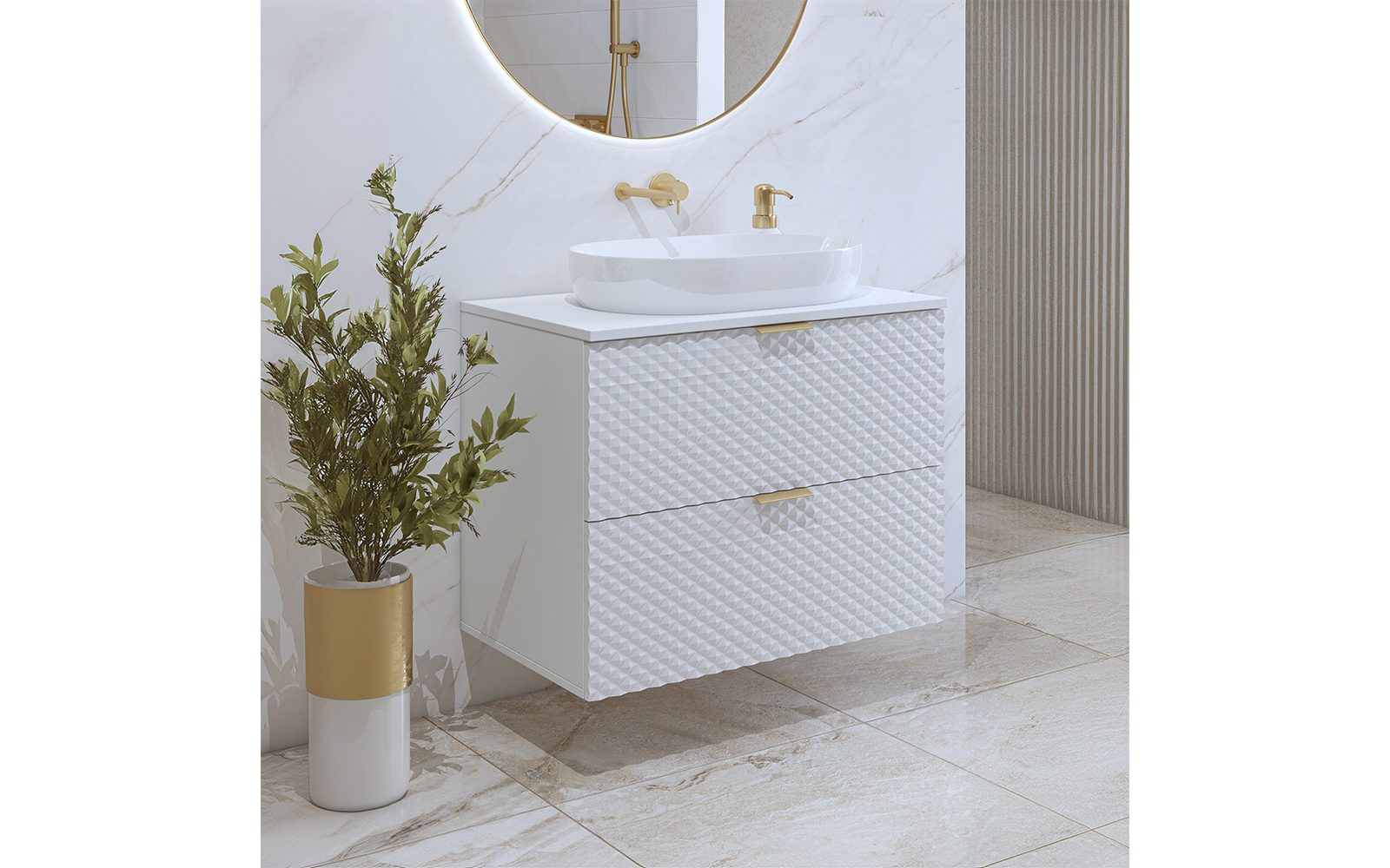 Parte din colecția Liora, acest model reflectă valorile de bază ale gamei: design modern, funcționalitate de top și eleganță atemporală. Este mai mult decât un simplu spațiu de depozitare – este o piesă decorativă ce contribuie la crearea unei atmosfere ordonate, rafinate și plăcute în fiecare baie.