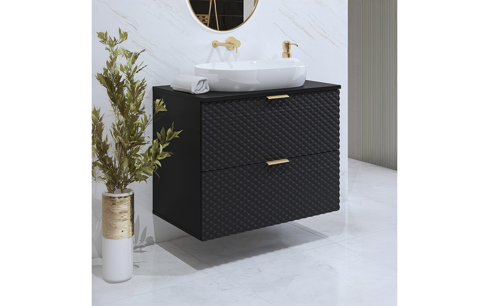 Cu dimensiuni de 80×63×49 cm, acest corp este suficient de compact pentru băile de dimensiuni mai reduse, dar în același timp oferă o capacitate generoasă de depozitare, adaptându-se ușor la nevoile unui spațiu contemporan.