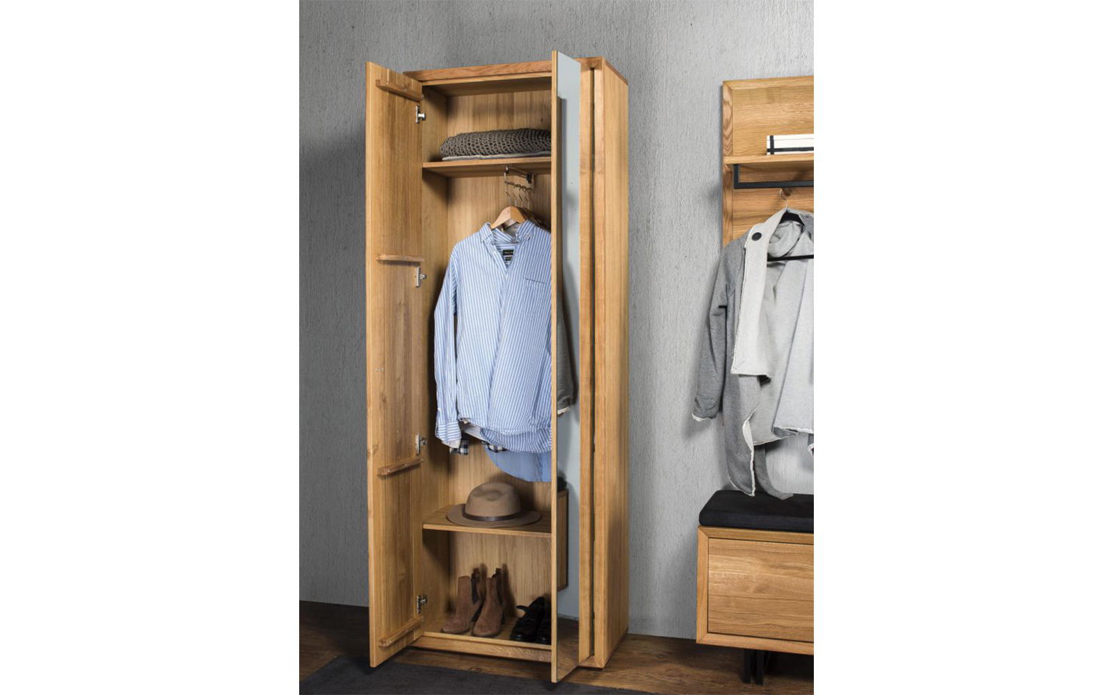 Dulapul înalt Sutton cu oglindă nu este doar un obiect util, ci și o piesă de mobilier de design, care îmbină tradiția lemnului masiv cu rafinamentul liniilor moderne. Este o alegere inspirată pentru cei care apreciază ordinea, eleganța și frumusețea autentică a materialelor naturale.