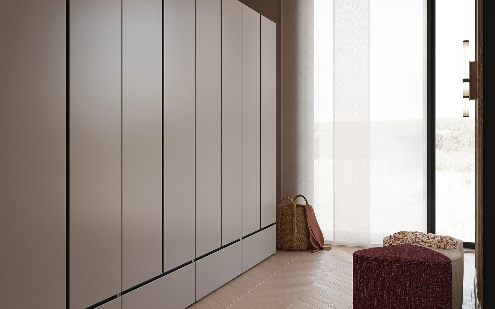 Finisajul său cu textură naturală și detaliile subtile creează o atmosferă caldă și primitoare, transformând dulapul într-un element decorativ de impact, nu doar o simplă soluție de depozitare. Este o alegere excelentă atât pentru camere moderne cu un aer minimalist, cât și pentru cele în care se dorește păstrarea unui ton natural și confortabil.