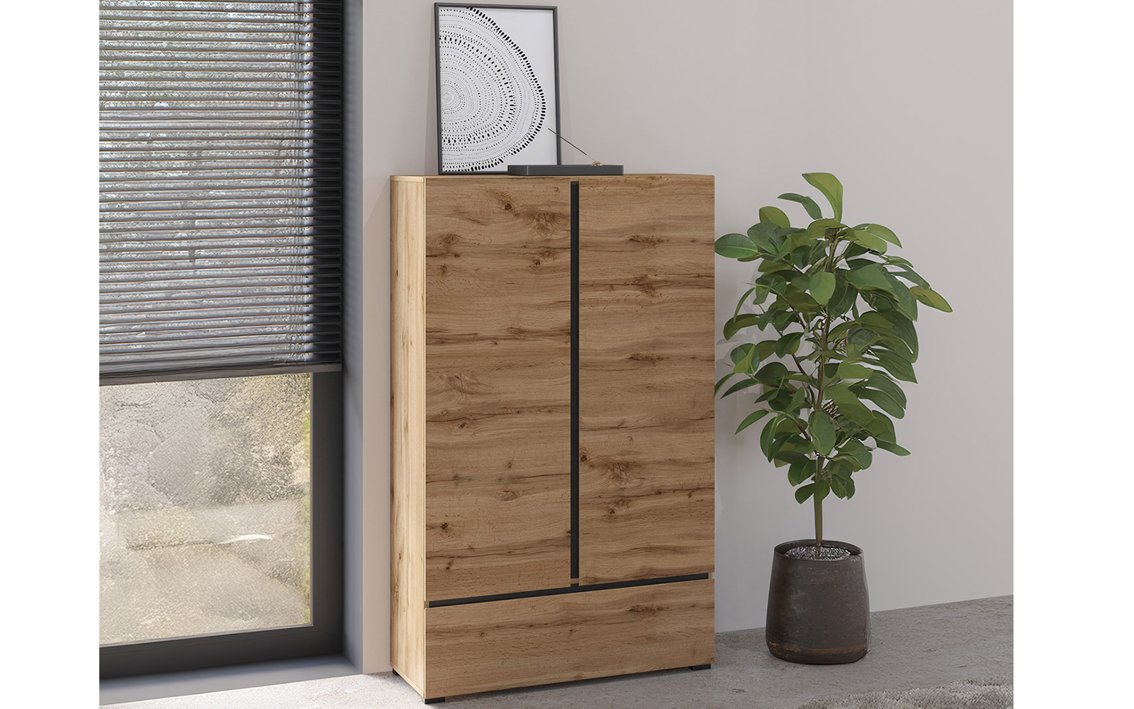 Dulap înalt cu 2 uși și 1 sertar, ideal pentru dormitor, living sau birou