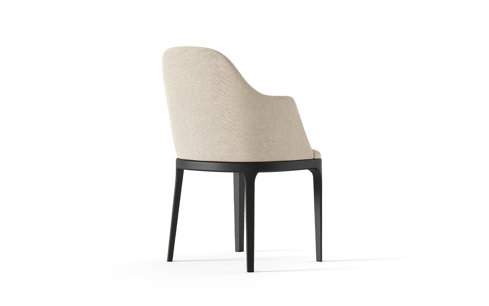 Șezutul este generos și bine capitonat, contribuind la confortul general și la stabilitatea poziției de ședere. Tapițeria adaugă un plus de rafinament vizual și tactil, având un aspect elegant și o textură plăcută la atingere. Designul său permite integrarea ușoară în amenajări moderne, contemporane sau minimaliste, dar și în interioare care îmbină elemente clasice cu accente actuale.