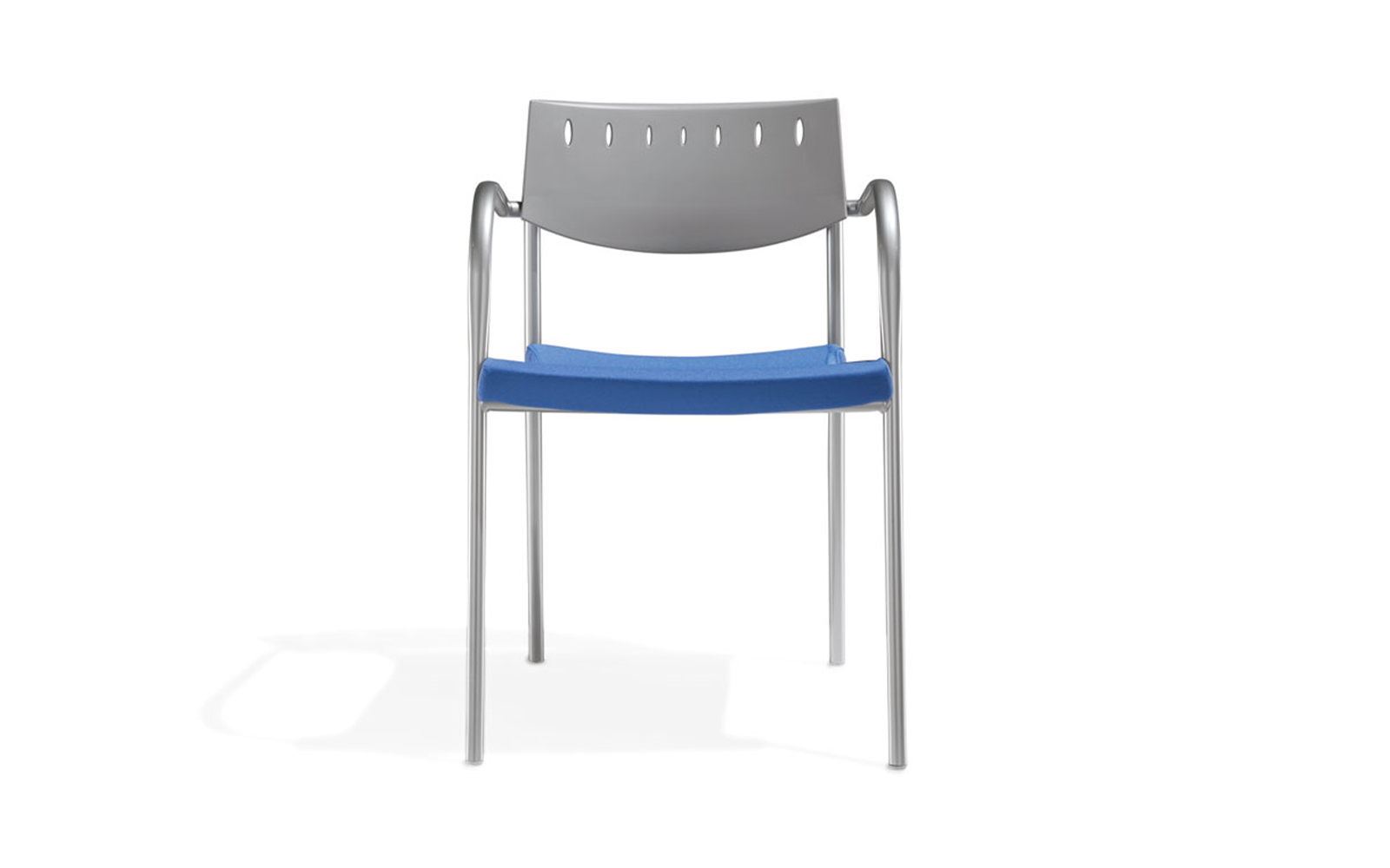 Șezutul este fabricat din poliuretan nedeformabil injectat la rece, turnat peste o placă metalică internă, ceea ce îi conferă stabilitate și rezistență îndelungată. Spătarul este din poliamidă (nylon), disponibil atât în versiune opacă cât și în variantă translucidă gri, și poate fi tapițat pentru un plus de confort și personalizare estetică.