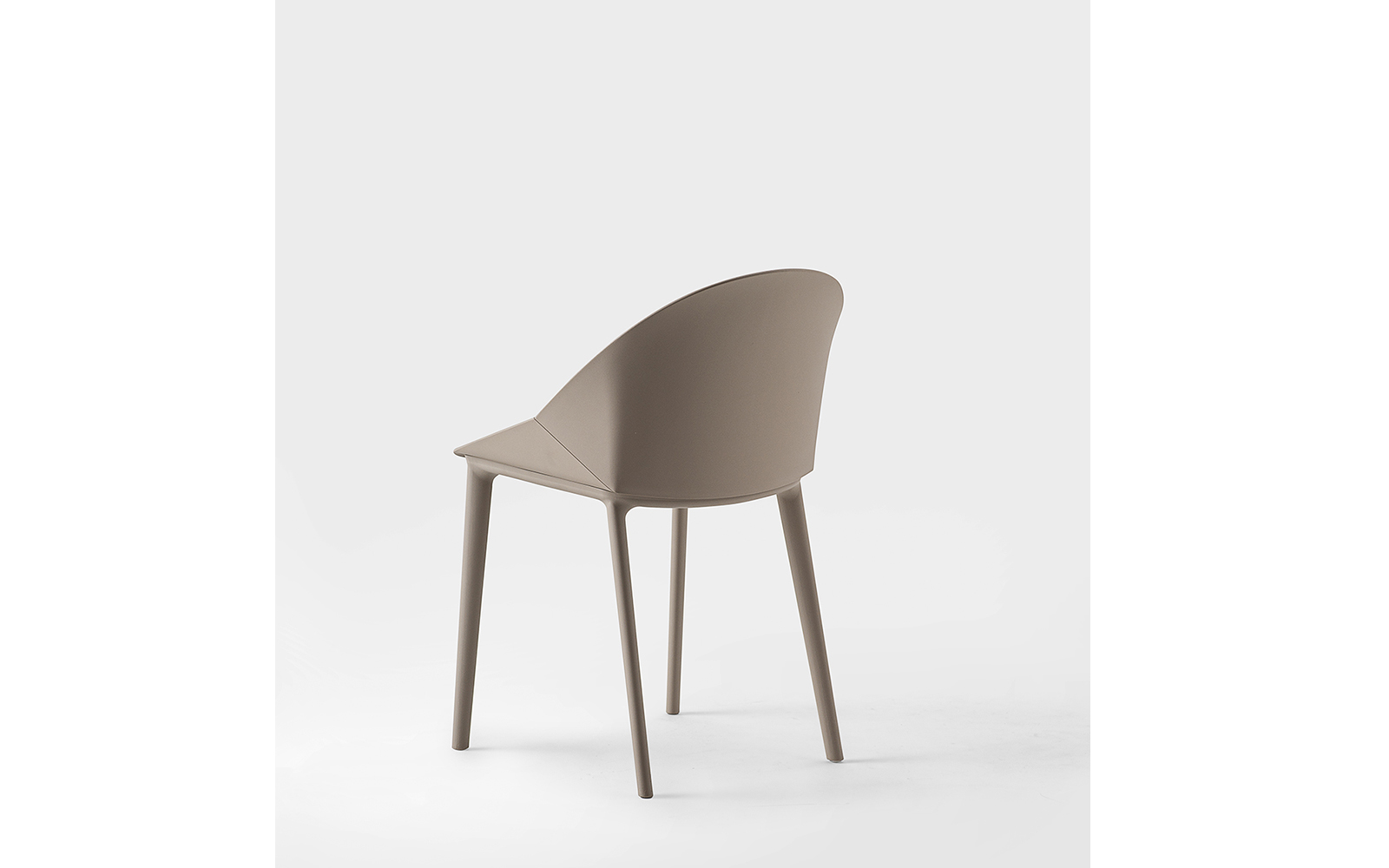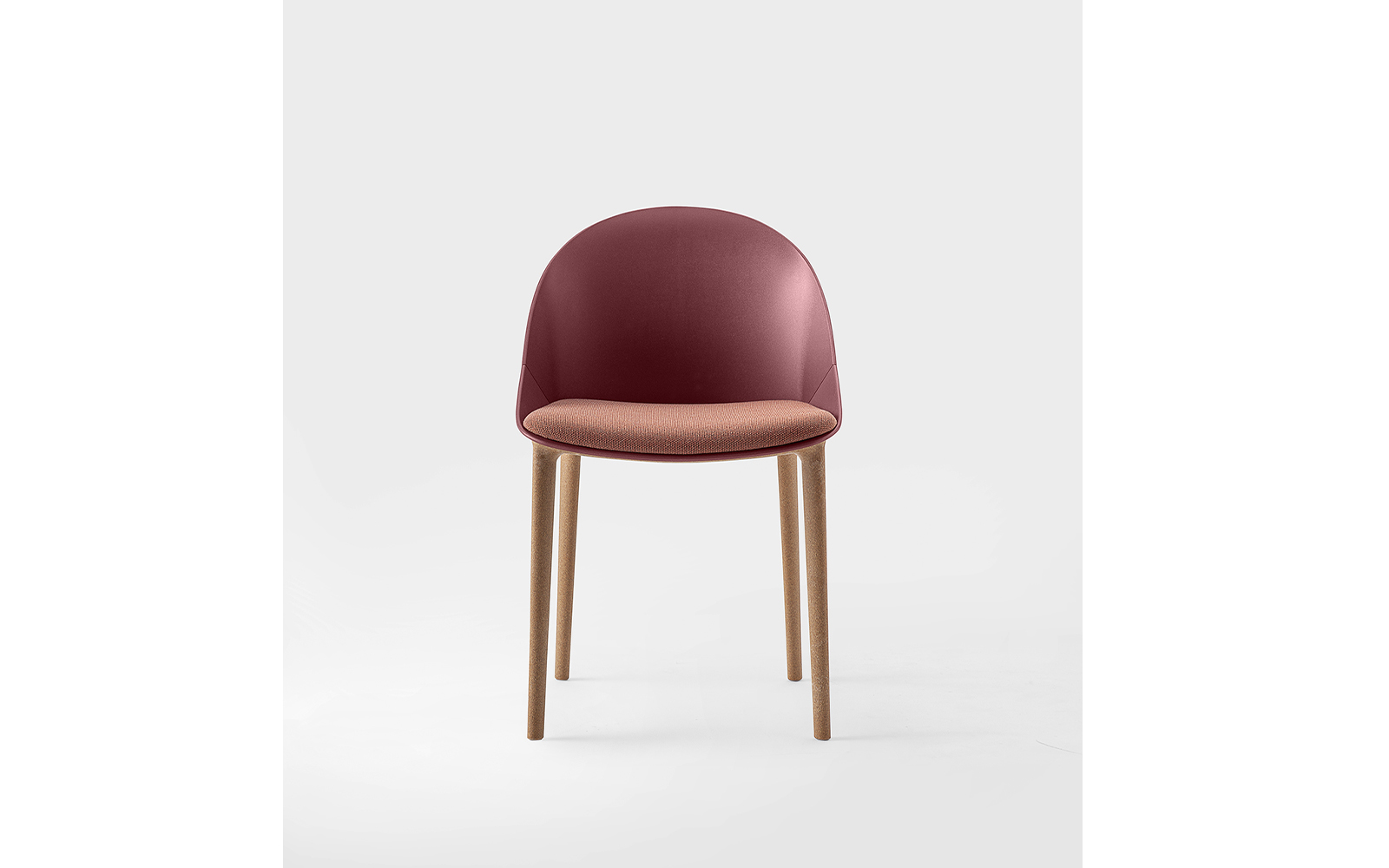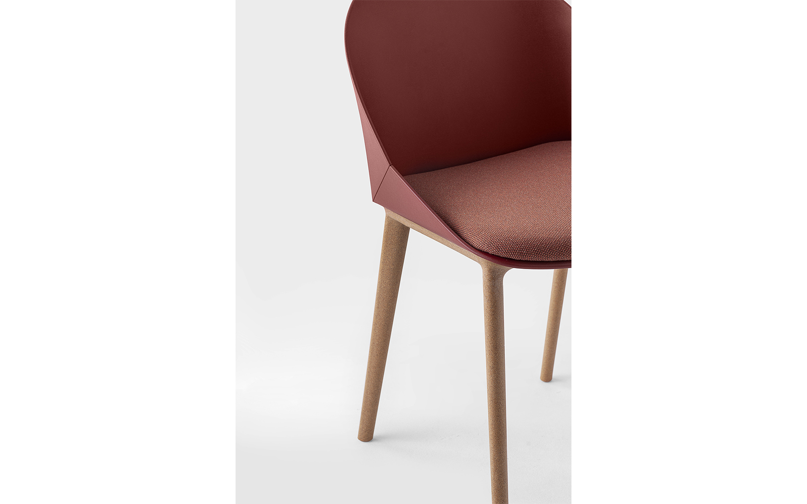 Cele 4 picioare fixe, realizate din același material, sunt echipate cu capace de protecție, oferind stabilitate și prevenind deteriorarea suprafețelor. Scaunul este disponibil și cu pernuță tapițată pentru șezut sau în versiune cu șezut + spătar tapițate, folosind spumă poliuretanică de 15 mm grosime și materiale textile, piele ecologică sau naturală. Acestea sunt certificate Oeko-TEX Standard 100, cu opțiuni ignifuge Clasa 1IM și rezistență Martindale >100.000 cicluri.