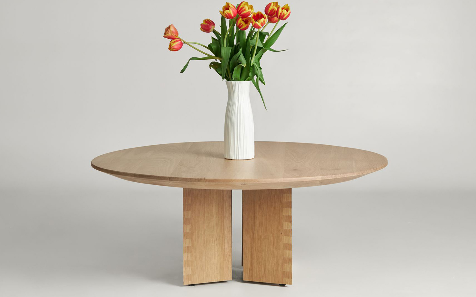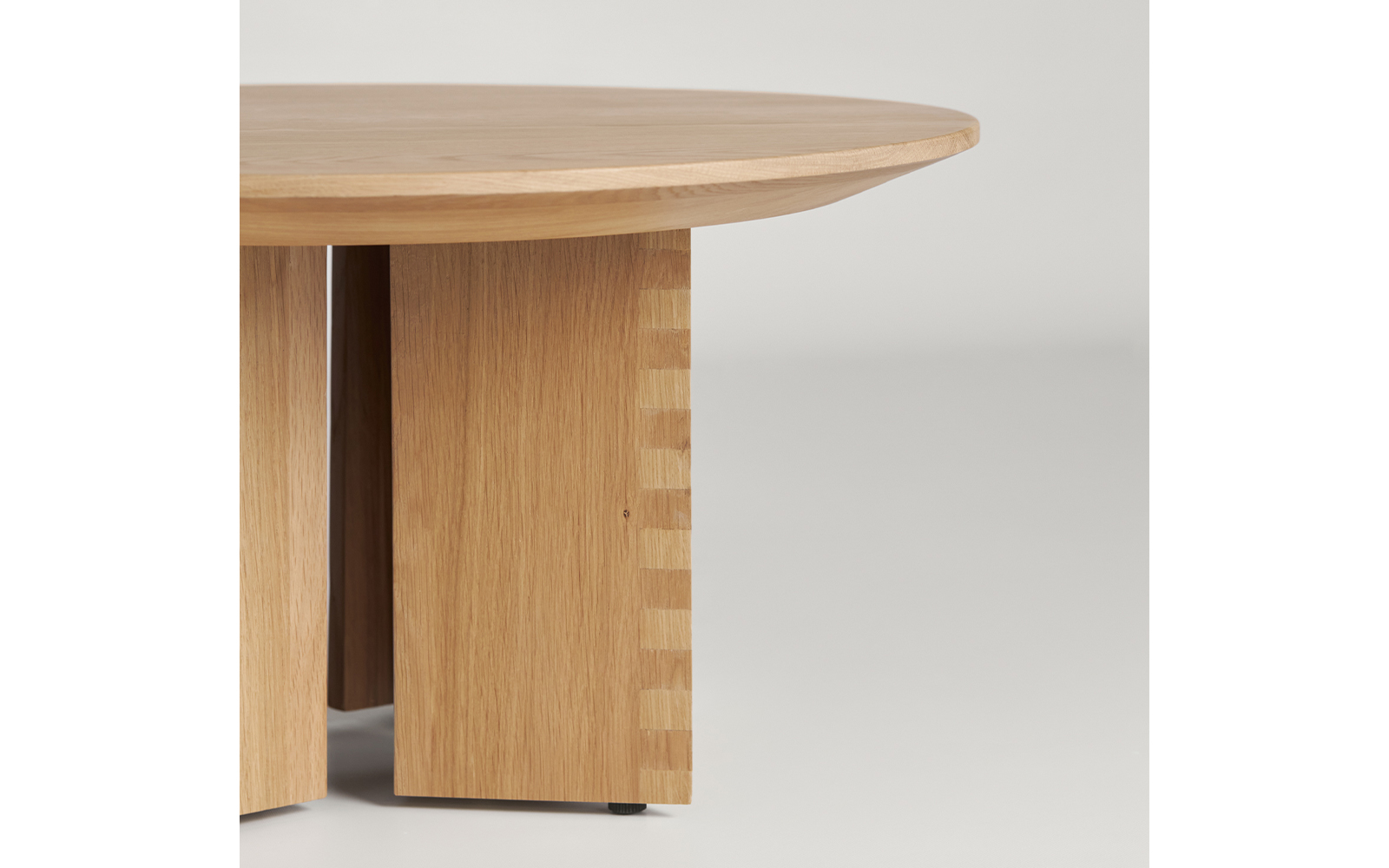 Blatul rotund, gros și solid, lucrat cu o atenție meticuloasă, dezvăluie frumusețea naturală a fibrei lemnului, adăugând un caracter autentic și cald spațiului. Textura vizibilă a stejarului, finisată cu delicatețe, subliniază durabilitatea și noblețea materialului, păstrându-i în același timp naturalețea și eleganța. Prin dimensiunile sale echilibrate, masa se adaptează cu ușurință atât într-un living generos, cât și într-un spațiu mai restrâns, oferind întotdeauna funcționalitate și rafinament.