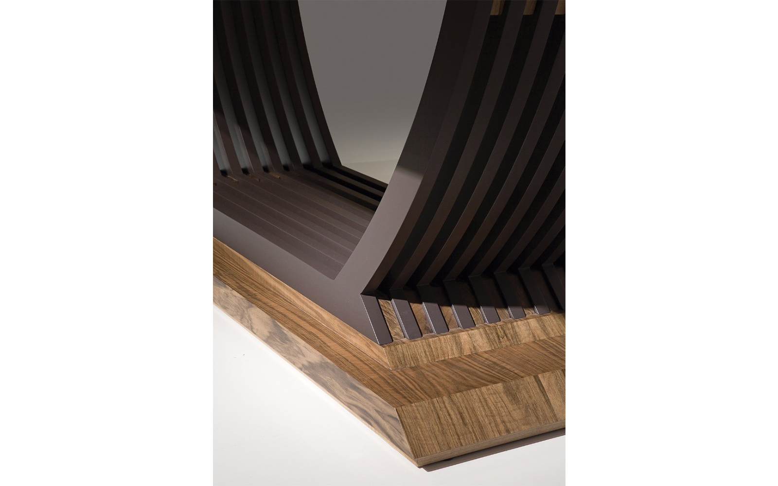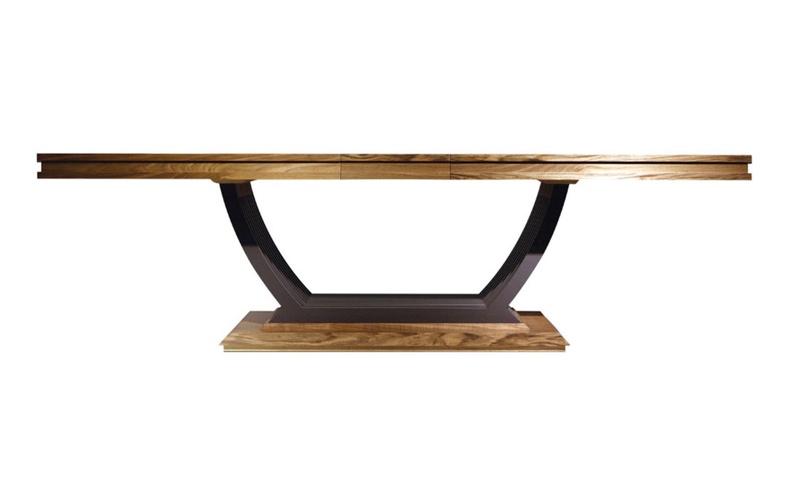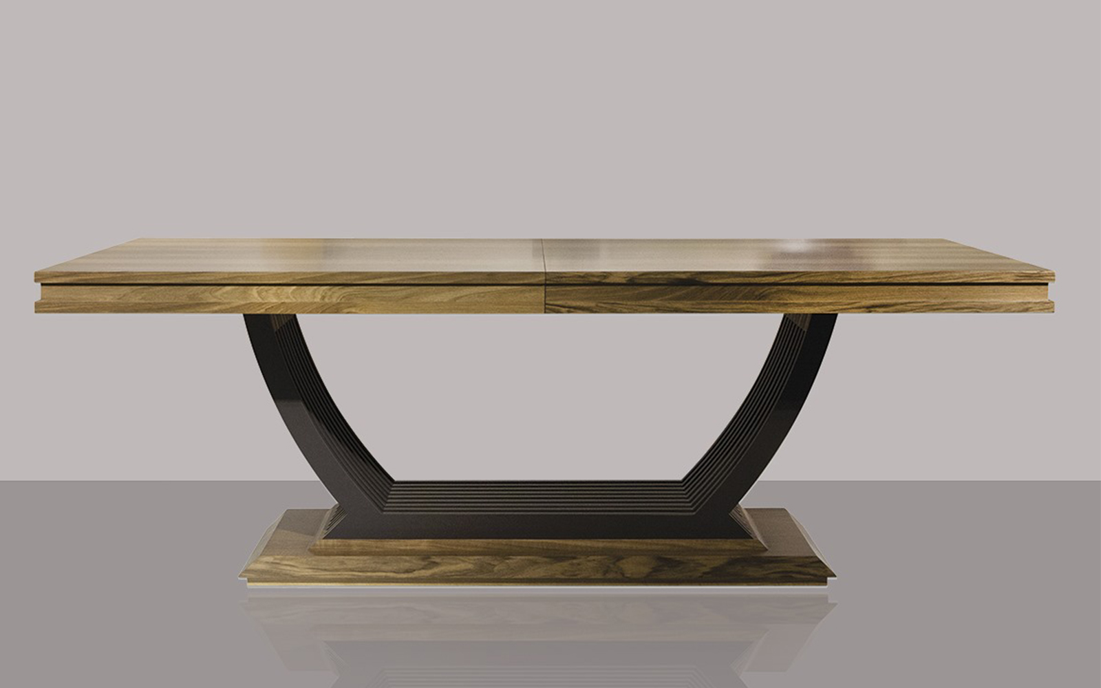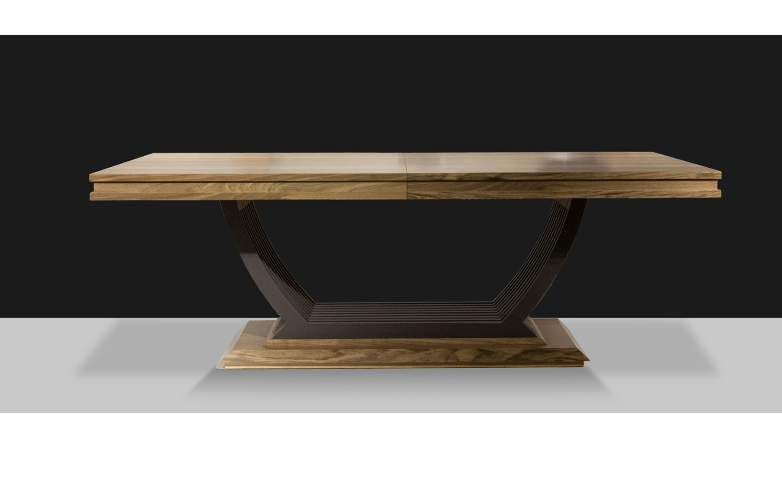 Masă Chocolate impresionează prin designul său arhitectural și eleganța naturală a lemnului masiv de nuc. Cu un caracter puternic și o construcție robustă, această piesă de mobilier se remarcă prin baza sculpturală în formă de arc inversat și prin finisajele atent lucrate.