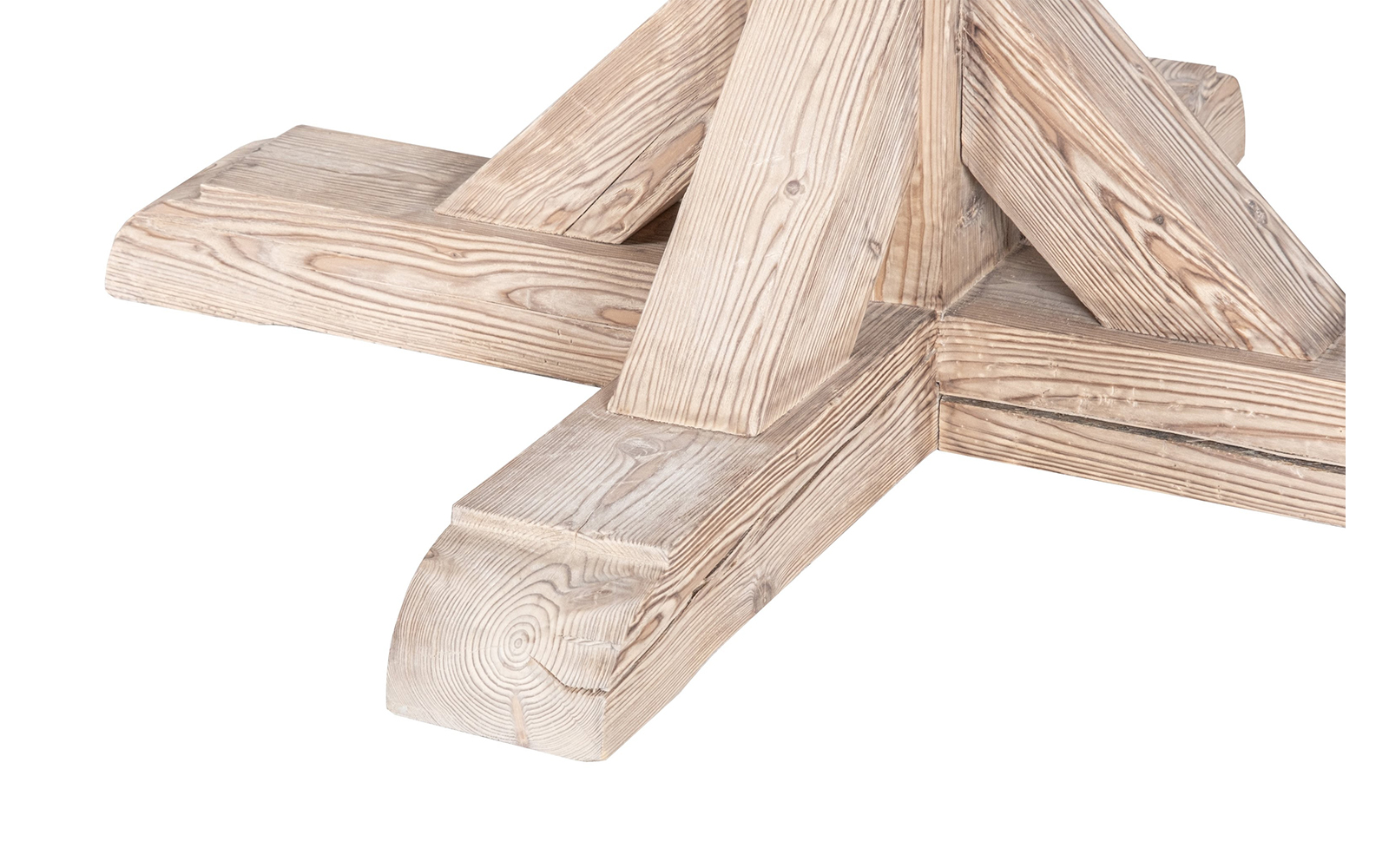 Baza centrală masivă, în formă de cruce, asigură stabilitate excelentă și oferă mesei un aspect robust, dar echilibrat. Designul este completat de un finisaj natural, care pune în valoare culoarea și textura lemnului, integrându-se cu ușurință în interioare Country Chic, rustice sau contemporane cu accente naturale.