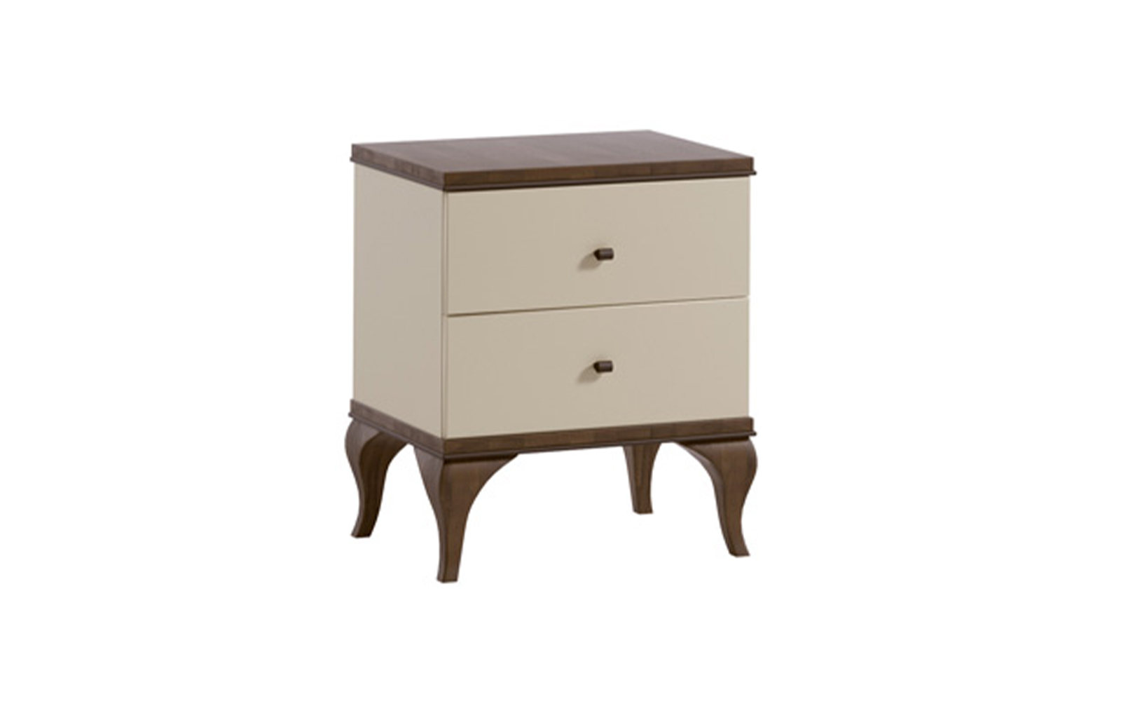Modelul este prevăzut cu două sertare spațioase, prevăzute cu mânere metalice discrete, care oferă suficient loc pentru a depozita obiectele esențiale de lângă pat – de la cărți și accesorii, la obiecte personale pe care dorești să le păstrezi la îndemână. Blatul superior poate fi folosit atât pentru lampa de noptieră, cât și pentru elemente decorative care să personalizeze spațiul.