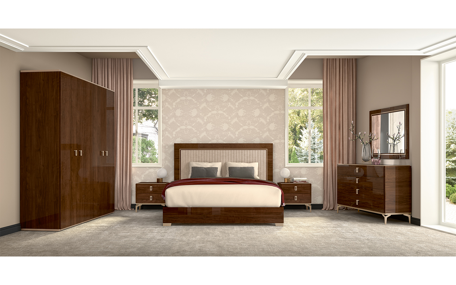 Se integrează perfect în dormitoare elegante, moderne sau contemporane, alături de comoda, noptiera și comodă înaltă din aceeași colecție.